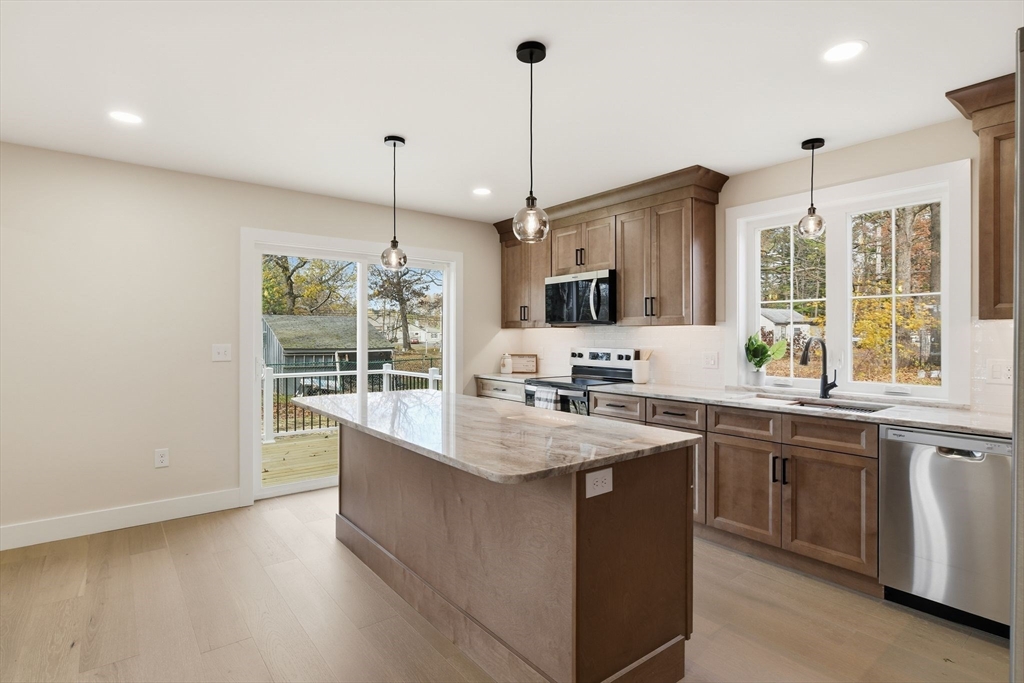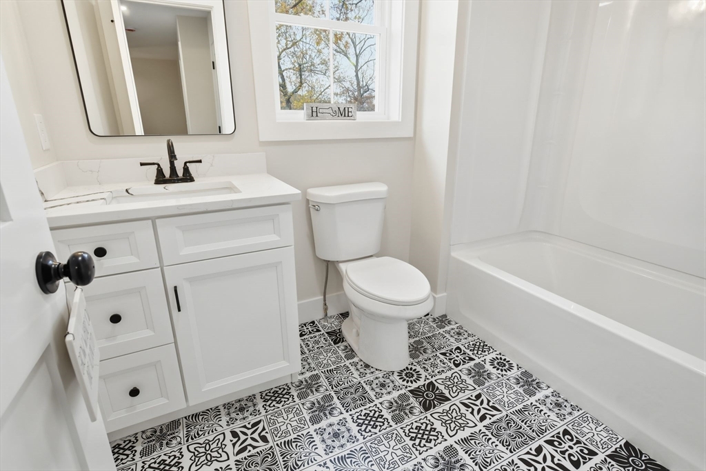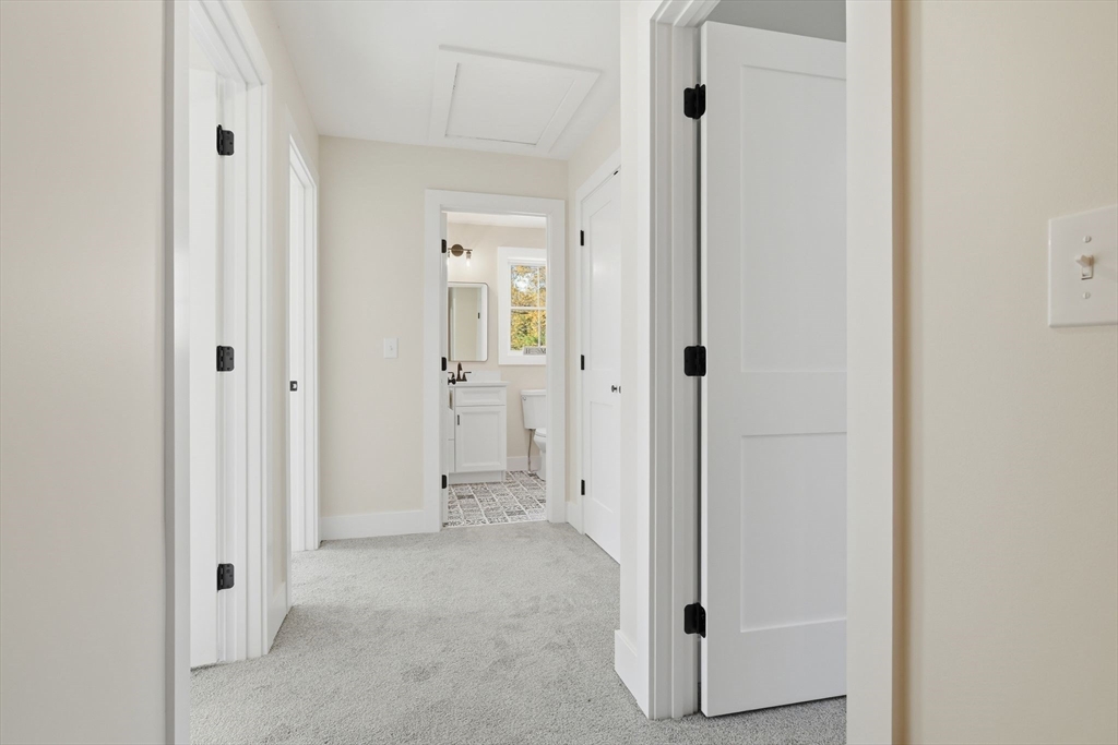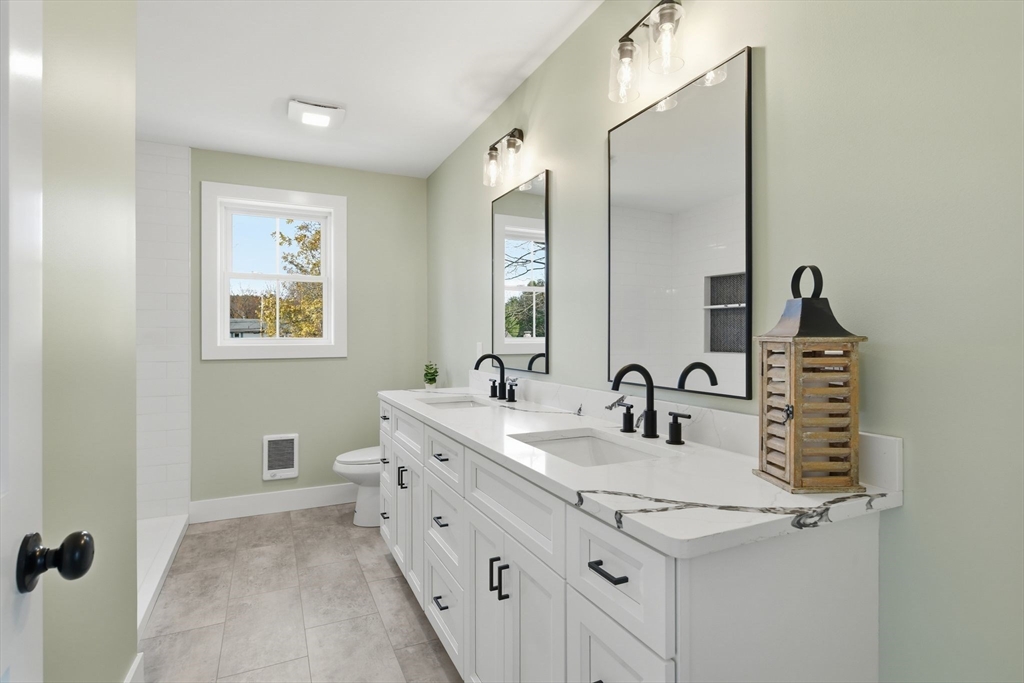 Experience modern comfort in this brand-new 3-bedroom, 2.5-bath home at 2 Lakemont Street in Southwick. Thoughtfully designed, this home features an open-concept layout with a stunning kitchen showcasing custom wood cabinetry, stainless steel appliances, and a large marble-look island—perfect for entertaining. The spacious primary suite offers a relaxing retreat with plush carpeting, a sleek barn door, and an elegant ensuite bath featuring dual vanities, contemporary fixtures, and a walk-in shower. Energy-efficient mini-split heating and cooling provide year-round comfort, while a one-car garage adds convenience. Set in a quiet neighborhood close to Congamond Lake and local amenities, this home beautifully blends style, efficiency, and function—ready for you to move in and enjoy.
