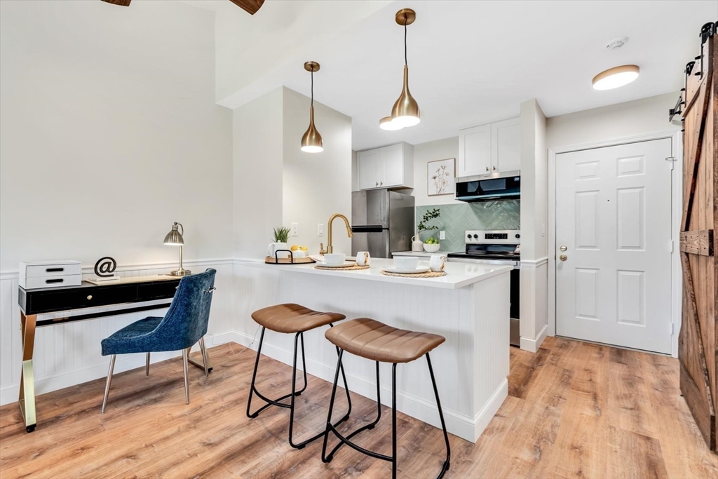 Step into this stunningly updated top-floor condo in the desirable Ocean Edge Resort community. Corner unit that is next to open space for more privacy. This 1-bedroom, 1-bath home offers soaring cathedral ceilings and an airy, open layout drenched in natural light. Relax outside on your own private balcony, or enjoy the sleek, fully renovated kitchen featuring quartz counters, stainless steel appliances, contemporary cabinetry, and chic lighting. The refreshed bathroom and brand-new flooring throughout add a polished, modern touch. Ideal as a year-round home, a Cape escape, or a proven rental investment. Experience easy, low-maintenance living just moments from Brewster’s beaches, the Cape Cod Rail Trail, shops, and restaurants. Optional Ocean Edge membership unlocks resort-style amenities, including pools, tennis, golf, fitness centers, and a private bay beach. Please note the unit faces the front of the building which is different than the picture