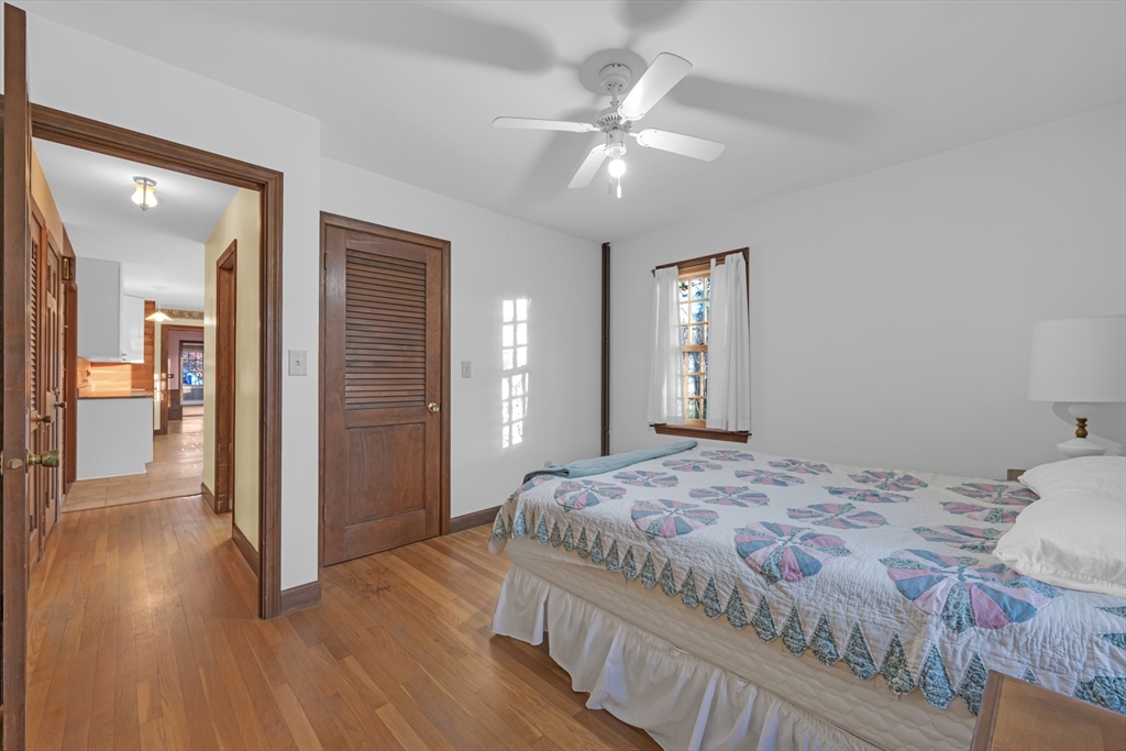 Welcome home to this well-maintained 5-bedroom, 2-bath Cape w/ 2-car garage, nestled in a peaceful neighborhood with an additional building lot! This home offers an expansive layout with hardwood floors throughout and flexible living options, including the potential for an in-law suite. The 1st floor features an updated kitchen with stainless steel appliances and a slider leading to a brand-new deck, perfect for entertaining. You’ll also find a large living room, a spacious dining room with fireplace, 2 bedrooms, a full bath with newer laminate flooring, a home office, and a sunroom filled with natural light. Upstairs, enjoy a large primary bedroom w/ walk-in closet, 2 additional well-sized bedrooms, and another full bath w/ cedar closet. The partially finished basement offers additional living space potential and includes a hot tub area—a great bonus for relaxation. Outside, the private backyard provides the perfect setting for gatherings or quiet enjoyment. Schedule your showing!