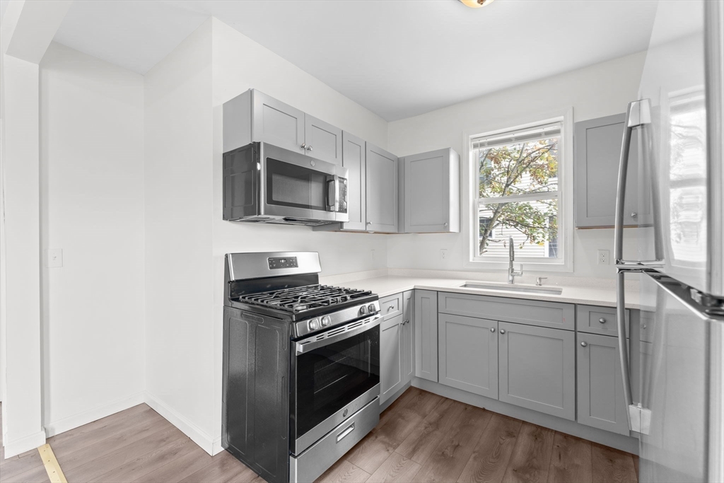 Beautifully renovated townhouse-style duplex perfect for owner-occupant or investor. Each spacious unit offers 4 bedrooms, open living/dining areas, fully applianced kitchens, unfinished basements with laundry hookups, and fenced-in backyards. Updates include new roof, siding, insulation, porches, and sewer/water lines. Interiors feature new electric, plumbing, furnaces, baths, quartz countertops, stainless sinks, full appliance packages, flooring, paint, doors, and full lead compliance. One unit features light blue paint, the other off-white. Neutral grays, whites, and pale blues fill the homes with natural light. Prime location near Downtown New Bedford, Route 195, and the newly operational commuter rail. Move-in ready and ideal for modern living or strong rental income.