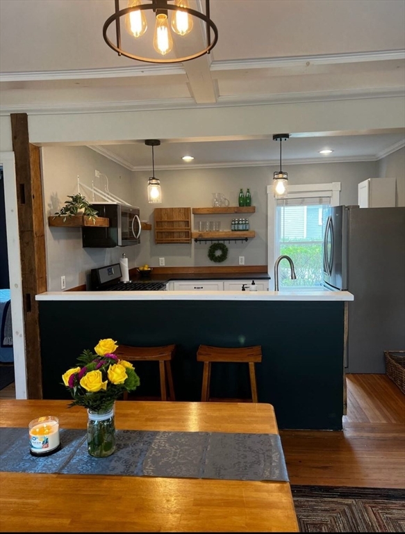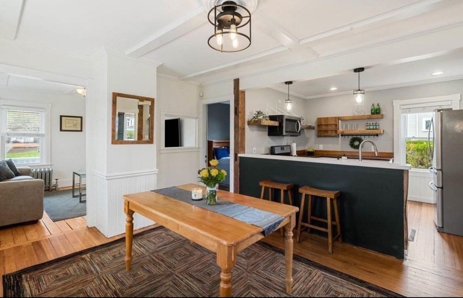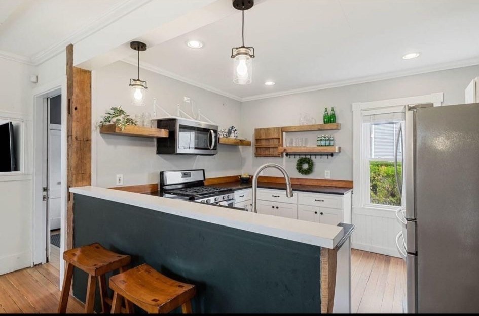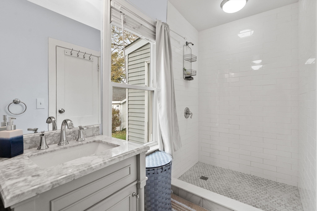 Move-In Ready North Plymouth Gem! Conveniently located near shopping, restaurants, and highways, this charming corner-lot home offers both comfort and convenience. Enjoy a spacious backyard, a two-car detached garage, and plenty of parking. Step inside to find a mud room, hardwood floors, updated tiled bathrooms, and a modern kitchen ready for everyday living or entertaining. The first floor features a bedroom and full bath, living room and dining room while the upstairs offers three additional bedrooms and a versatile flex space—perfect for a den, home office, or playroom. Relax on the inviting farmer’s porch or enjoy your outdoor space which offers an plenty of space being on the corner—this home blends classic charm with modern updates and is ready for its new family to make it their own.
