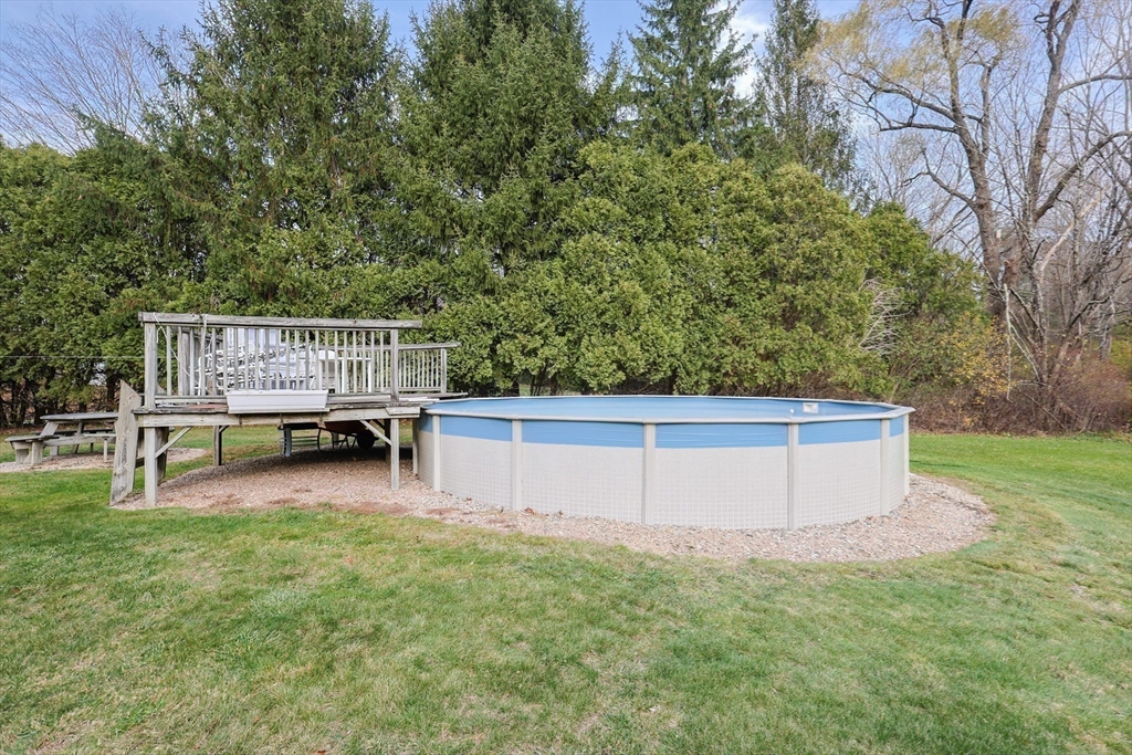 First time on the market! This one-owner home has been meticulously cared for and the pride of ownership shows. Set back from the road and nestled among trees, this 3-bed, 2-bath home is ready for its next chapter. Recent updates include a new roof (2025) and new heating system, central A/C, and hot water heater (2024). Enjoy the cozy gas fireplace in the living room or the coal/pellet stove in the lower-level playroom. Convenient cedar closet in the laundry area. Hardwood floors in first floor bedroom, living room and dining room. Summer fun awaits with an above-ground pool and a screenhouse with changing room and storage. A large shed provides space for all your lawn tools. Title 5 in hand! Come see this wonderful home and move in just in time for the holidays!