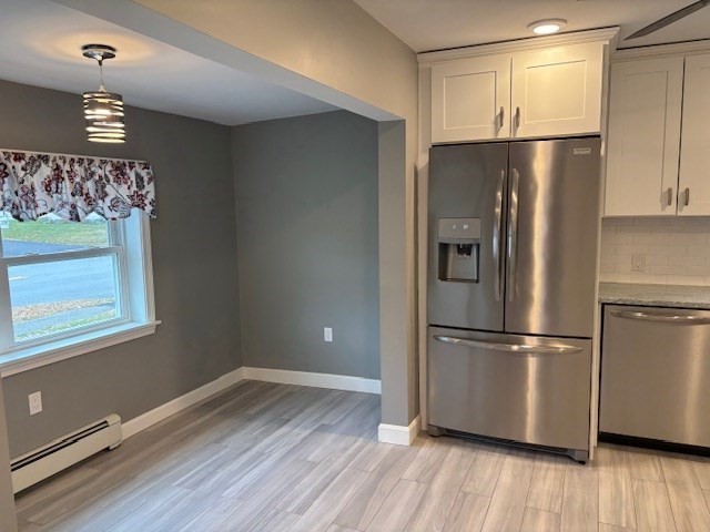 Great Location! Available now this 2 bedroom, spacious and updated kitchen, living room, and 2 full baths. This unit has updated bathrooms and hardwood through out. Shared back yard and 2 parking spaces. This unit is conveniently located near Shopping, Schools, Restaurants, Public Transportation and Highway 93 and 95 access.Note: Owner is leaving Washer and Dryer, but if they break it is up to Tenant to fix or purchase new ones. Tenant is to remove all snow from driveway and stairs. There is no access to the basement. Owner pays utilities Electric and Gas.