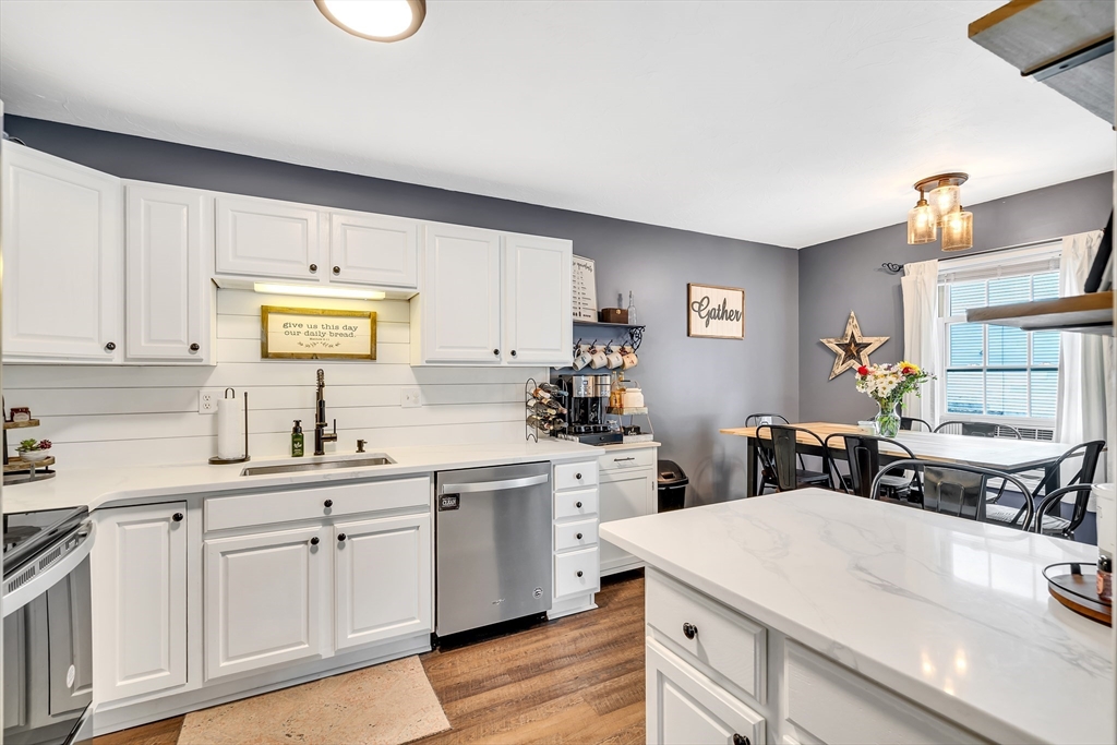 NO CONDO FEES!! Welcome to this wonderfully maintained 3-bed, 1.5 bath townhouse condominium. Beautiful engineered laminate floors throughout the entire home provide a modern feel. The first floor hosts a large living room that flows nicely into your spacious kitchen and dining area, with stainless steel appliances. Upstairs, you will find your sun-drenched primary bedroom with vaulted ceilings and massive walk-in closet, two additional large bedrooms, and 2nd level laundry! Basement is large, clean, and tall enough to add finished space. A 1-car garage, large, level, FENCED IN back yard with a deck off of the living room complete this home's fantastic attributes. Located on a quiet side-street in the center of Leominster, this property is walking distance to Doyle Field and vibrant downtown Leominster, full of shops, boutiques, and amazing restaurants. Minutes away from the highway AND the North Leominster T Station, it is perfectly situated close to all that Leominster has to offer!