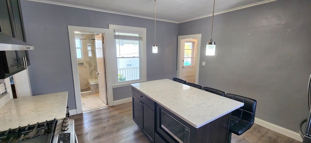 Available now! Renovated and Spacious 2 Bedroom / 1 Bath apartment with off-street parking located near Downtown Revere. This 1100 sqft, 2nd floor unit features a modern eat-in kitchen (stainless steel appliances, large island, granite counters with great storage), renovated bathroom with stand-up tiled shower, spacious living room, large primary bedroom with walk-in closet, good sized second bedroom. Other highlights include hardwood floors throughout, private outdoor balcony, shared backyard and 2 off-street parking spaces! No laundry on site. Pets negotiable for additional amount. Location is very convenient access to highways 60, 16 and 1A providing you easy access to North Shore/South Shore/Revere Beach/Logan International Airport. There is the 110 Bus stop out front with access to Wonderland Blue Line MBTA.