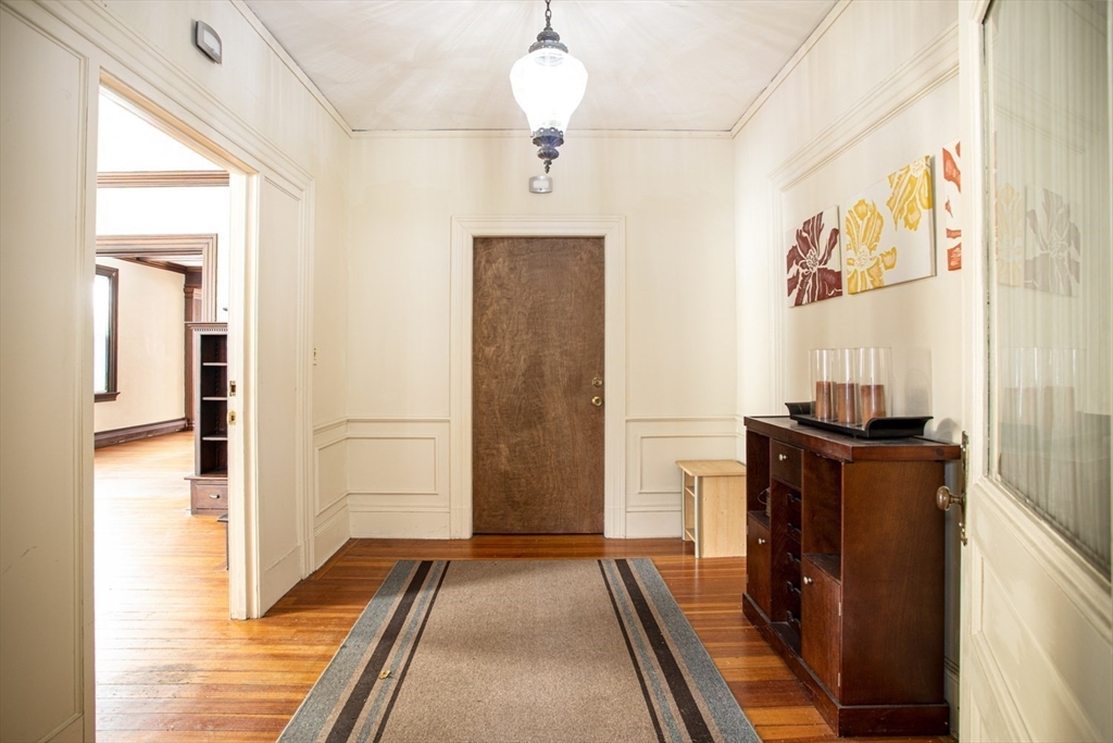 Absolute Gem! Built in 1900 with beautiful hardwood floors throughout, chandeliers and 3 Decorative Fireplaces, there's an ambiance of yesteryear. This first floor apartment features a total of two bedrooms, and 1 1/2 baths providing comfortable accommodations within its 2264 square feet of living area. Enter through the home office/libray with stunning built-ins and a fireplace then enjoy the double parlor layout with another fireplace.This area can be used as the dining room with it's connection to the Kitchen which has a separate pantry, plenty of storage, gas range and a dishwasher. The Main Bedroom is connected to the Bath w/ walk-in shower and the 2nd Bedroom is connected to the 1/2 bath.This home provides ease of access from the front porch and a side porch to enjoy the sunsets. Coin-op washer and dryer in the basement. Utilities Included! Short Distance to the Train, perfect for commuters.