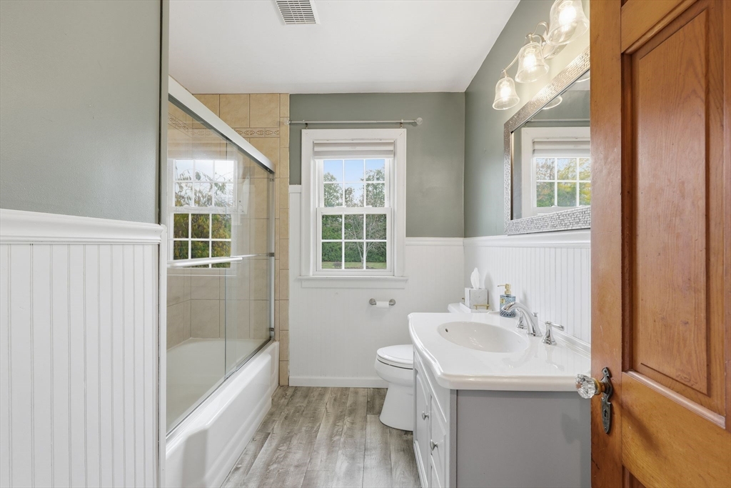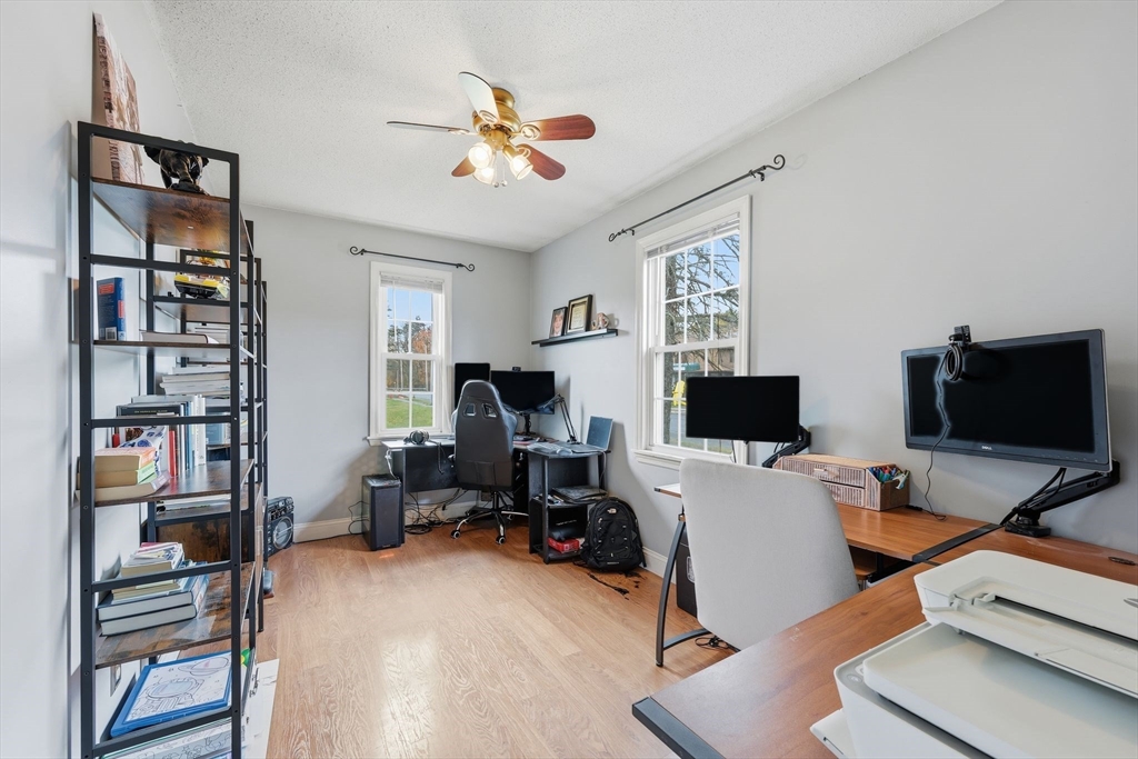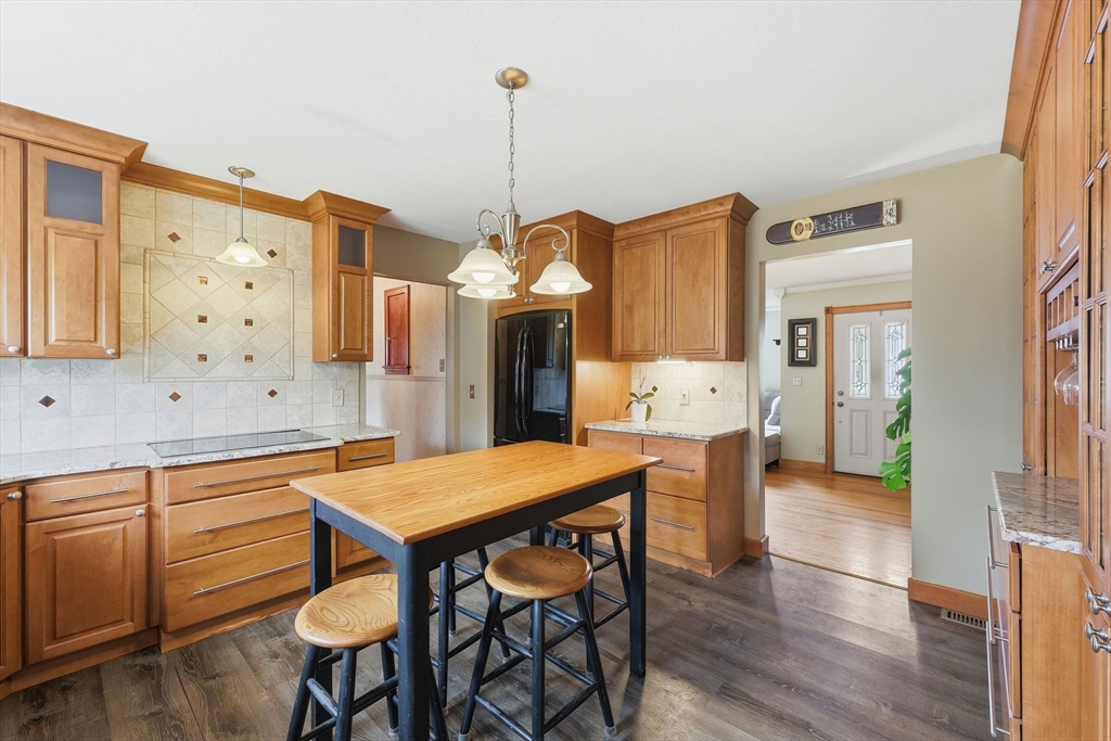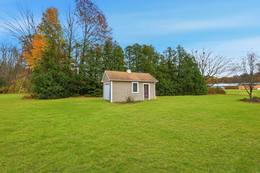 This picture perfect ranch pairs easy single floor living with thoughtful updates. The beautifully remodeled eat-in kitchen features maple cabinetry, granite countertops & a bay window overlooking the backyard. The spacious living room centers around a cozy gas fireplace creating a warm & welcoming feel. 3 comfortable bedrooms, or 2 plus an office, offer flexibility for your lifestyle. A large walk-in closet adds extra storage or the potential for a future 1/2 bath. The basement boasts plenty of storage space & a desirable cedar closet. The oversized insulated 30x24 garage provides great workspace, while the detached shed sports electricity, water & space to park a small car adding even more versatility. The backyard offers plenty of room for all your big toys. Enjoy a raised paver patio & lower concrete pad ready for a hot tub or outdoor entertaining. Great location with Buttery Brook Park across the street, with pickleball courts, disc golf, basketball & seasonal farmers markets.