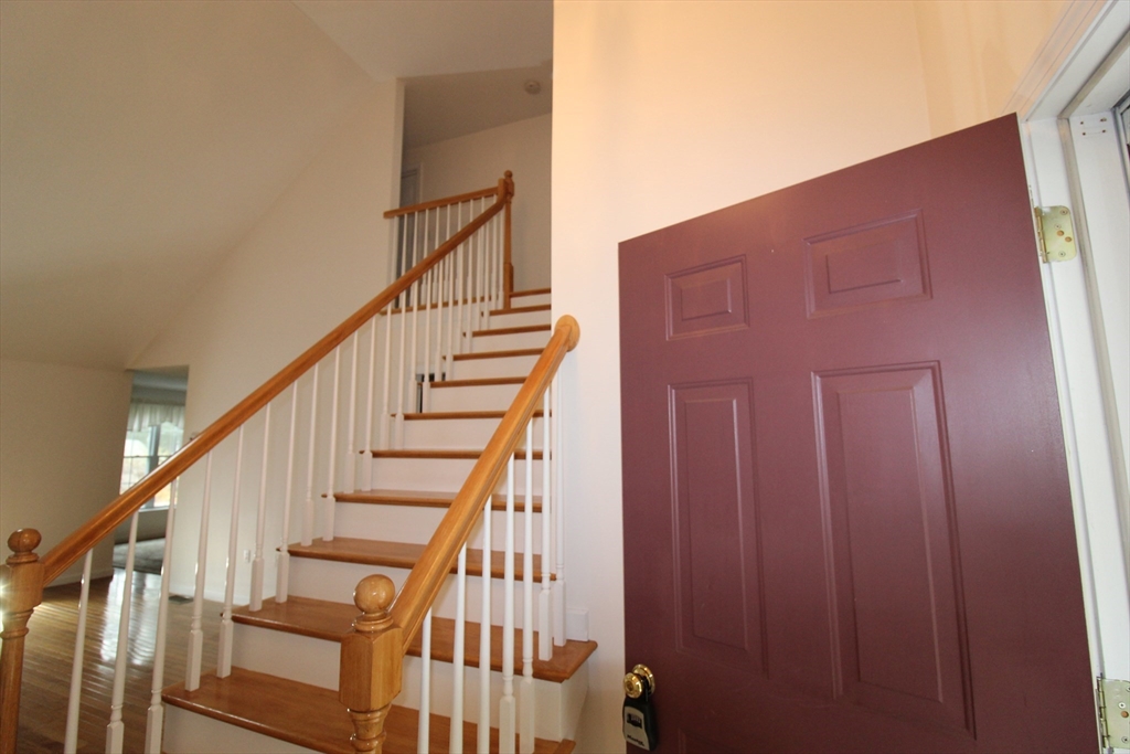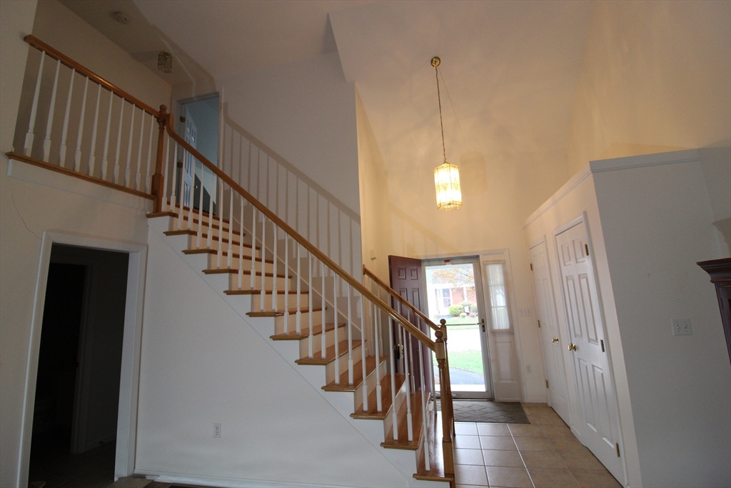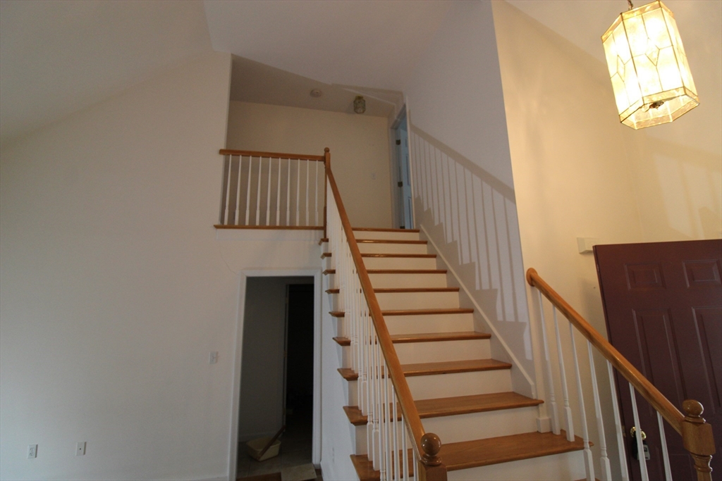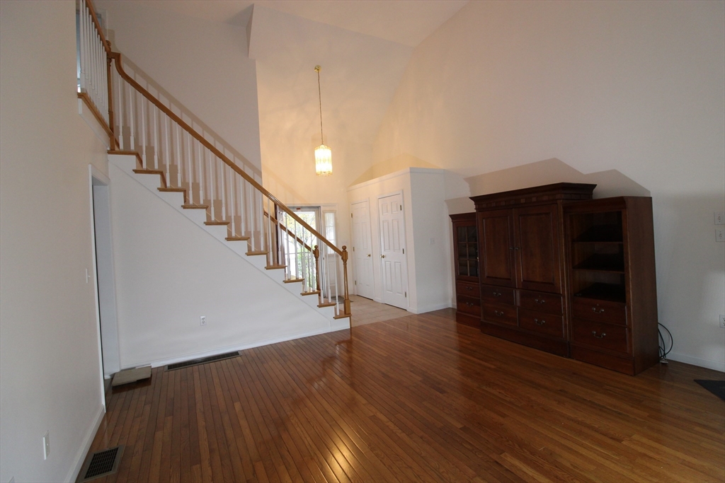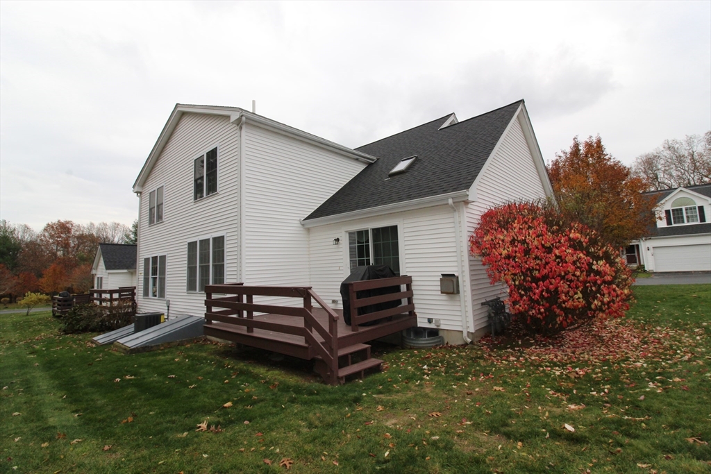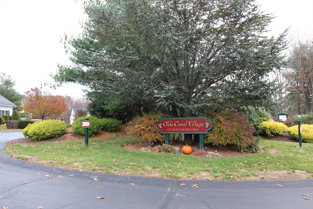 WELCOME HOME to this light filled end unit townhouse in the over 55 community, Olde Canal Village, two spacious bedrooms, main bedroom with vaulted /ceilings and huge walk-in closet and entrance to bathroom, two story cathedral ceiling living room with GAS FIREPLACE, open to dining area and kitchen with access to the deck and back yard. The kitchen is cabinet packed. ALL HARDWOOD LIVING AND DINING AREAS, and a GRAND OAK STAIRCASE, leading to the second floor. You will appreciate the FIRST-FLOOR LAUNDRY, half bath and the TWO-CAR GARAGE. The large basement can be transformed to whatever you decide. CENTRAL AIR and recently replaced HOT WATER TANK and GAS FURNACE. Enjoy the Blackstone River and Canal Heritage State Park for walking and hiking.