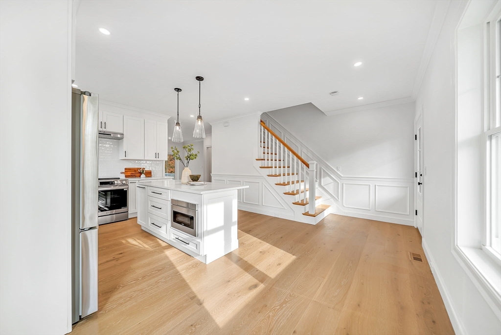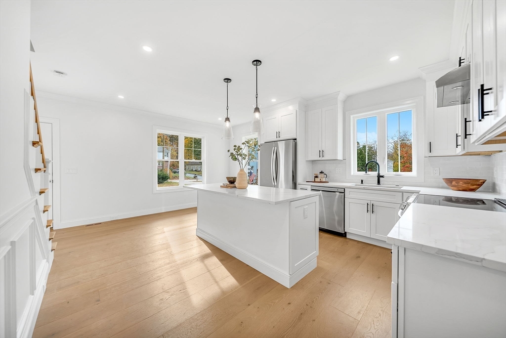 Modern 3-bedroom, 2.5-bath stand alone duplex in a serene cul-de-sac, offering the perfect blend of style, function, and prime location. This quality new construction boasts an open-concept layout with 9-foot ceilings, creating a spacious, airy feel. The designer kitchen features a center island, perfect for entertaining or daily living. Enjoy superior finishes, including double-sink vanities, recessed lighting, and thoughtful details throughout. Convenience meets comfort with a second-floor laundry, finished walkout basement, and a charming front porch for morning coffee or evening chats. Located moments from major commuter routes, train, shopping, entertainment, and within walking distance to town, this home delivers an unbeatable lifestyle. Additional 500 sq ft of finished space available for extra charge