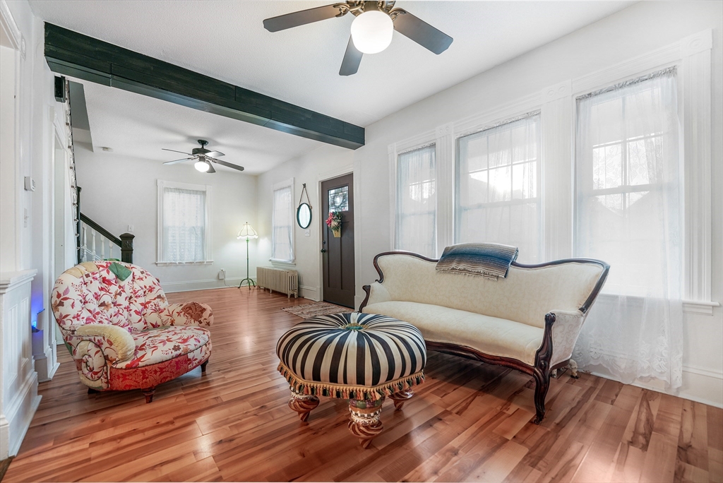 Discover timeless Old New England charm w/ modern comfort in this beautifully maintained 4-bedroom (currently 3), 1.5-bath home offering 1,400 square feet of inviting living space. Situated between Buttonwood Park & Downtown New Bedford, this move-in ready home provides easy access to the highway & is conveniently close to the Southcoast Rail, St. Luke’s Hospital, & local colleges. Step inside to find hardwood floors, updated bathrooms, & new tile and carpet flooring throughout. The spacious master bedroom features a walk-in closet, providing the perfect retreat. New Harvey windows fill rooms w/ natural light, while the 4-year-old roof & new gutter system ensure peace of mind for years to come. Enjoy outdoor living on your new Trex decks—both front and back—overlooking a fenced-in private yard, perfect for relaxing or entertaining. The paved driveway offers two parking spaces, & the clean, dry basement includes a new French drain & sump pump, adding valuable storage and utility space.