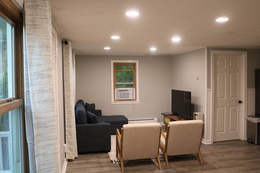 Off Season Rental! Available now to the end of May only! Welcome to this charming furnished 2 Bed 1 Bath Ranch, a true Chatham gem that has undergone a complete renovation, offering modern comforts and stylish finishes throughout. The open-concept layout features a fully equipped kitchen with stainless steel appliances and inviting island providing ample space for preparation and entertaining. The kitchen flows into the spacious living and dining areas. The bathroom has been tastefully updated and includes new laundry machines for an added convenience. This home boasts two generously sized bedrooms, one with a king size bed and the other with two queens. Other amenities include an EV charger and back yard oasis with a large deck, fenced in yard, and outdoor shower. Perfectly situated only 1.3 miles from Ridgeval beach, .5 miles to Schoolhouse Pond, and close to parks, shopping and restaurants.