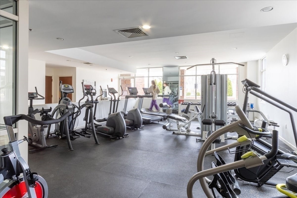 Just renovated and like new! Bright 853 SF 2 Bed / 1.5 Bath Bay Square condo has brand new 4" white oak hardwood floors throughout. New white shaker wood cabinet kitchen with SS French door refrig, and quiet Bosch DW. Exquisite quartz countertops with subway tile backsplash. Open Living/Dining Room features sliding glass door and overlooks the front courtyard. The primary en-suite bedroom has a large walk-in closet and full bath. The second bedroom is flexible as an ideal office space. Central Heat and AC included. Bay Square is a full service elevator building with 24/7 Concierge services, outdoor saltwater pool and hot tub, new Fitness areas, and Sauna. Spacious common laundry on every floor. Unbeatable location minutes to Harvard and MIT, and close to Downtown Boston. Step outside to enjoy vibrant shops, acclaimed dining and quick access to the MBTA Red Line, #1 Bus to Back Bay, and local highways. Includes deeded storage and one secured Garage Parking space!