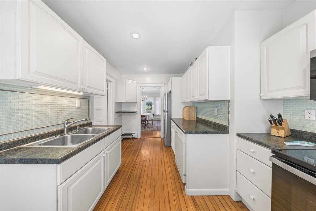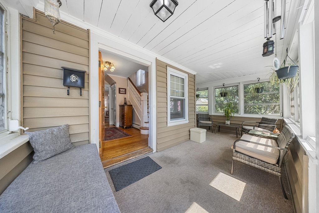 Located on a corner lot in an established neighborhood setting in the Newton Square area of Worcester, this 4-Bedroom, 1.5-Bath Colonial Style Home showcases the pride of a 30+ year ownership of care. Upon entry, you are first greeted by an “L” shaped three-season patio that leads to a sizable living room with a fireplace & custom built-ins that highlight 1920-era charm and are present in other parts of the home, such as the dining room. The kitchen features a recently updated stove/range, tile backsplash, white cabinetry, and half bath with laundry. Moving upstairs, you will notice hardwood floors throughout the 4 bedrooms in addition to an updated full bathroom with subway tile & vanity with granite countertop. Bonus Third-Level space. A flat, fenced-in backyard provides privacy for play & entertainment while the detached two-car garage offers additional storage & parking. Relatively close in proximity to Worcester Airport, Schools, Healthcare, Restaurants, Shopping, and more.