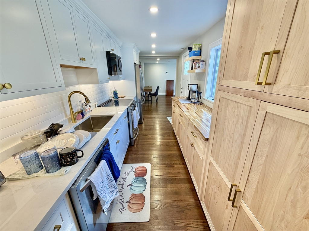 Nestled in the charming community of Bedford, MA, this fully remodeled detached property offers an exquisite living experience, combining modern luxury with the warmth of a cozy family home. As you step inside this stunning two-bed, two-bath residence, you're greeted by lustrous hardwood floors that flow throughout the 1210 sqft of thoughtfully designed living space. The heart of this home is its modern kitchen, boasting high-efficiency appliances and fixtures that cater to both the casual cook and the aspiring chef. The adjacent living area, enriched with a cozy fireplace, provides a serene retreat for quiet evenings or a welcoming space for lively gatherings. Outdoor living is elevated with a spacious 500 sq/ft patio embraced by a tastefully fenced backyard, offering an idyllic setting for entertaining, or simply enjoying the tranquil outdoors.