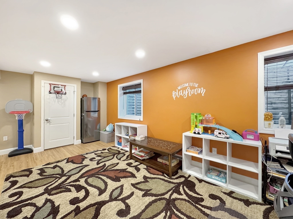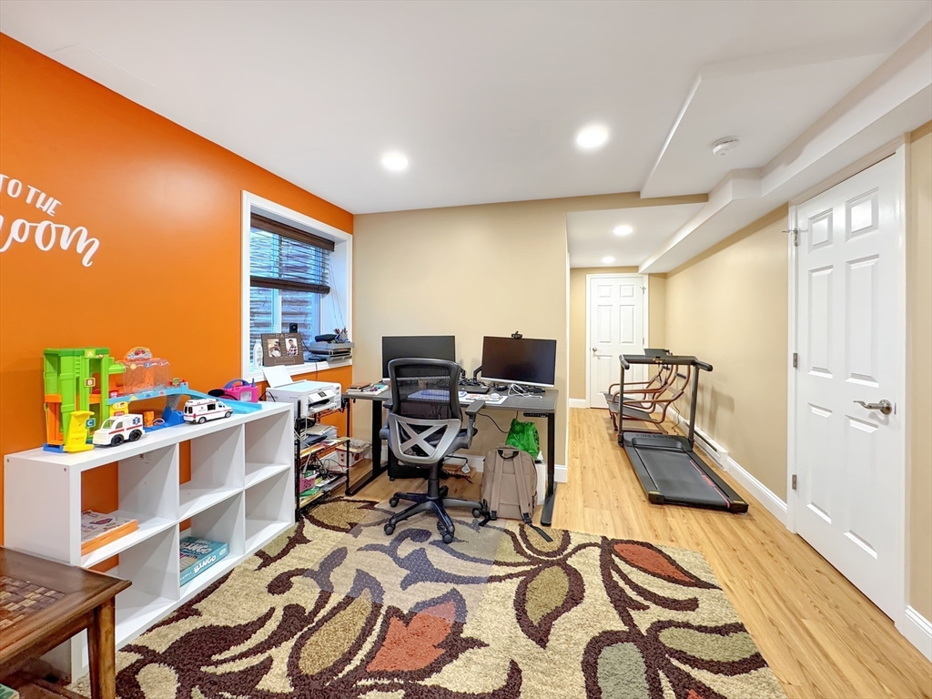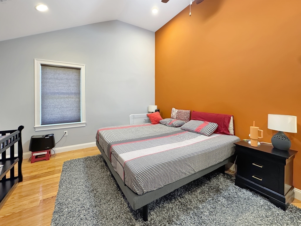 Step into this stylish and spacious home built in 2018 and kept in like-new condition. You'll love the open layout, natural light, and high-end finishes throughout. The main floor includes a bright living room with a cozy fireplace, a chef-style kitchen with granite countertops and island seating, plus a dining area and half bath, perfect for entertaining or relaxing. Upstairs, you'll find 3 generous bedrooms, 2 full bathrooms, and in-unit laundry. The main bedroom features vaulted ceilings, a walk-in closet, and a luxurious bathroom with a tiled shower. Enjoy must-haves like central A/C, hardwood floors, crown moldings, recessed lighting, and . The home also includes a private deck, large fenced yard, garage, and tons of storage space if needed, including a pull-down attic with a finished basement with high ceilings and a half bathroom. All this in a quiet, desirable neighborhood with quick access to Routes 93 & 95, plus nearby shops and restaurants