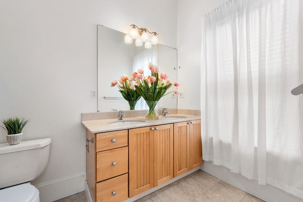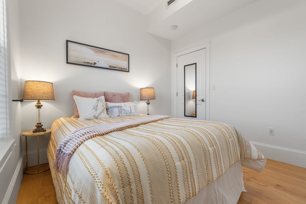 Enjoy modern city living in this top-floor 2BR, 2BA condo at South Boston. Features an open layout with hardwood floors, sun-filled living space, and an updated kitchen with granite counters and stainless steel appliances. The spacious primary suite offers an en-suite bath, and both bedrooms have generous closets. Private deck with Boston skyline views. Recent updates include a new water heater (2024), washer/dryer (2025), cooking range and stove (2025), and fresh paint (2025). Central A/C, in-unit laundry, low condo fees, and pet-friendly. Steps to shops, dining, and public transit — the perfect mix of comfort, style, and convenience.