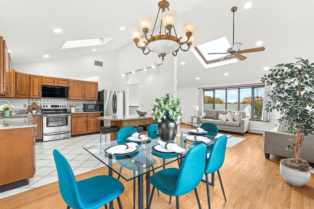 Step inside this charming 4-bedroom, 2.5-bath split-level in the Skyewood Acres neighborhood in Stoneham. The main level features a bright living room flowing to the dining area and a well-appointed kitchen with granite countertops, stainless steel appliances, and ample cabinet space. From the dining room, step onto the back deck overlooking an enclosed backyard, perfect for relaxing or entertaining. Three bedrooms, including a master suite with its own bath, complete the main level. The lower level offers a cozy family room with a fireplace, an additional bedroom, a full bath and a laundry room with added cabinetry for extra storage. Hardwood floors, fresh interior paint, and new recessed lighting enhance the home’s inviting feel. Central air, a new hot water tank (2024), and 16 owned solar panels provide comfort and efficiency. Conveniently located near I-93, this home is ready for you to move in and start making memories before the holidays!