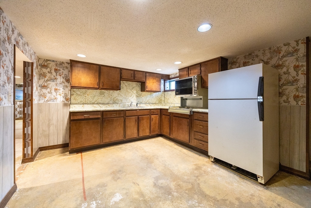 Attention contractors or buyers looking to customize their dream home! This ranch-style property offers exceptional potential in a peaceful waterfront setting on a cul-de-sac street in one of Holliston’s most popular neighborhoods. The main level includes a kitchen, living room, dining room, den, heated sunporch, primary bedroom with ensuite bath, three additional bedrooms, and a second full bath, ideal for one-level living. The lower level adds 1,020 sq. ft. of heated space featuring a 15x36 family/media room with built-in bar, a game room, and a second kitchen, perfect for entertaining. A spacious garage and large shed provide ample storage. Enjoy serene sunrises over Houghton’s Pond, then take advantage of recreational activities on the beautiful Upper Charles Rail Trail or the hiking trails of nearby Mount Hollis. Holliston is located within easy commute to Boston, Worcester, and Providence. Bring your ideas and imagination to unlock the full potential of this diamond in the rough!