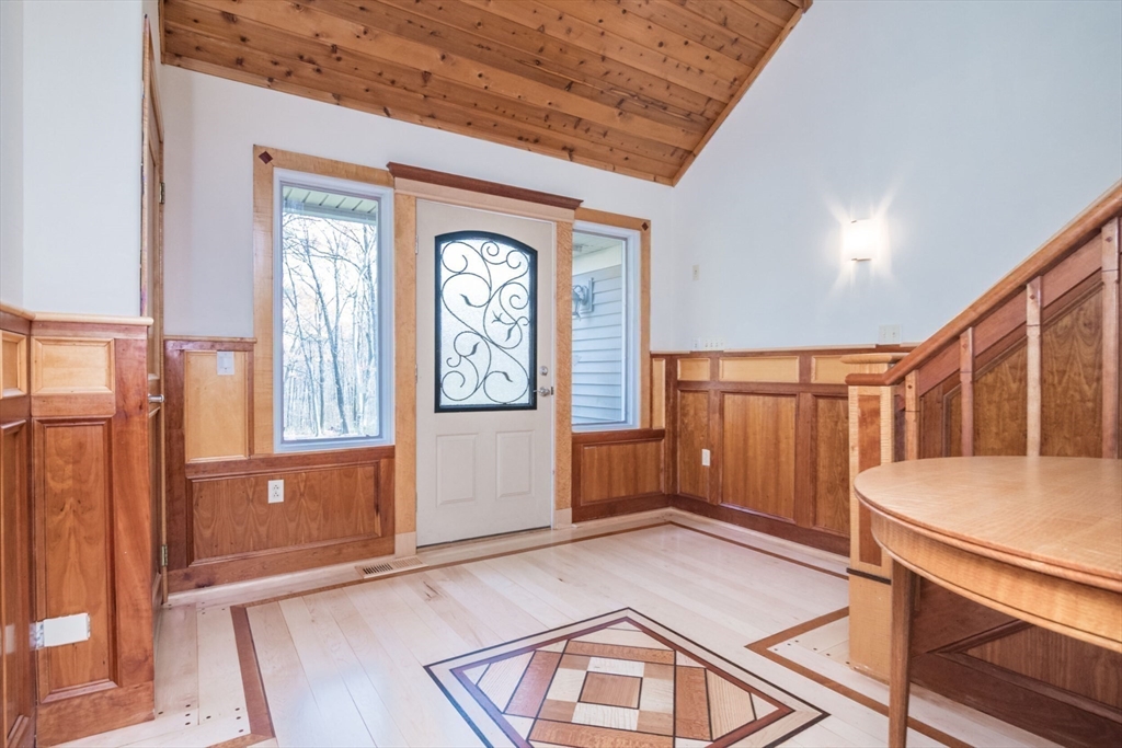 Set on 2.95 private acres, this contemporary home offers quality and efficiency. Custom cherry cabinets and built-in shelving along with stunning hardwood floors add warmth and character. Experience flexible living with thoughtfully designed spaces, a dedicated 1st-floor laundry room, a hybrid office or guest bedroom, a spacious rec/gathering room, a 2nd-floor bonus room, and a private main bedroom with an ensuite bath. Cozy up to an inviting double sided stone gas fireplace with a book or over dinner. Radiant heat flows through much of the 1st floor and the upstairs bathrooms. A geothermal heat pump, whole-house air purification system, and generator ensure year-round comfort. The sunroom opens to a patio and inground pool—ideal for entertaining. An expansive insulated outbuilding with radiant heat, electricity, workshop, 2 oversized garages with mega storage offers endless possibilities. A living oasis - less than 3 miles from local amenities!
