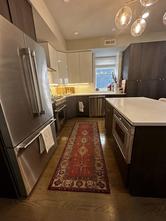 Welcome home to modern sophistication in this stunning 2021 new construction featuring 3 spacious bedrooms and 2 full bathrooms. Designed with elevated living in mind, this residence offers 10-foot ceilings, hardwood floors throughout, and high-end finishes including Quartz countertops and Thermador stainless steel kitchen appliances. Enjoy two private outdoor decks, an additional loft/office space with walkout access to your own private rooftop — perfect for working from home or entertaining. The unit comes complete with in-unit Bosch washer and dryer, central air/heat, Nest temperature control, and remote-powered blackout shades in all bedrooms for ultimate comfort. Two deeded off-street parking spaces are included, featuring a personal ChargePoint EV charger. Special Offer: Sign an 18-month lease with a December 1st (or sooner) lease start and receive half a month of free rent!