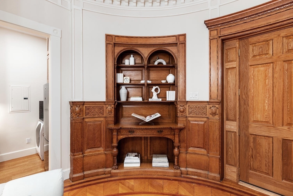 Step into the former grand parlor of a Back Bay mansion designed by architect Charles Brigham, reimagined for modern living. Built in 1887 for Henry Austin Whitney, a prominent shoe manufacturer & railroad executive, 261 Marlborough is a French Academic-style brownstone steeped in Boston’s history. This 640 sq. ft. studio, once part of the Whitney family’s home, still showcases ornate millwork, a monumental fireplace, and ceiling medallions that once hosted the city’s Gilded Age elite. Now transformed with a chef’s kitchen featuring bespoke cabinetry, quartz counters, and under-cabinet lighting, plus a spa-inspired bath with rainfall shower & clawfoot tub, the residence blends history with luxury. With soaring ceilings, abundant natural light, and potential to convert to a 1-bedroom, it offers rare appeal. Perfectly set between Fairfield and Exeter Streets, just blocks from the Public Garden and Commonwealth Mall, it places you in the heart of Back Bay.