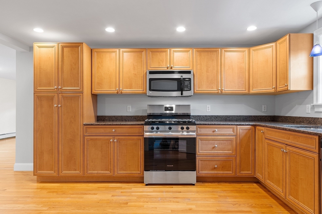 Desirable downtown Salem condo in three-unit building with a custom kitchen featuring stainless steel appliances and a granite countertop. Two bedrooms, two bathrooms, in-unit laundry, hardwood floors, and off-street parking with one garage space. The open dining and living room combine to make plenty of entertaining space. New disposal, stove, dishwasher and kitchen faucet in 2025. Pets – ‘one ordinary domestic household cat or dog may be kept by any unit owner’. Venture just 0.4 miles to the Peabody Essex Museum and take advantage of all that awaits in the bustling downtown, featuring dozens of restaurants. Commuting is easy with the Salem train station 0.7 miles away. Stick close to home and enjoy the Salem Common 0.2 miles, Collins Cove or the Derby Wharf both at just 0.3 miles away.