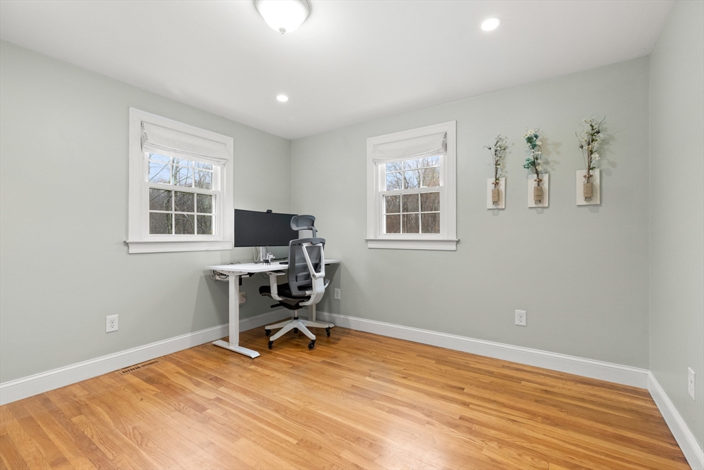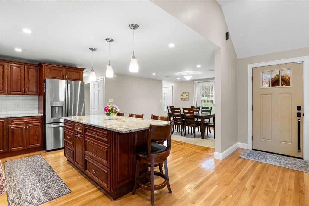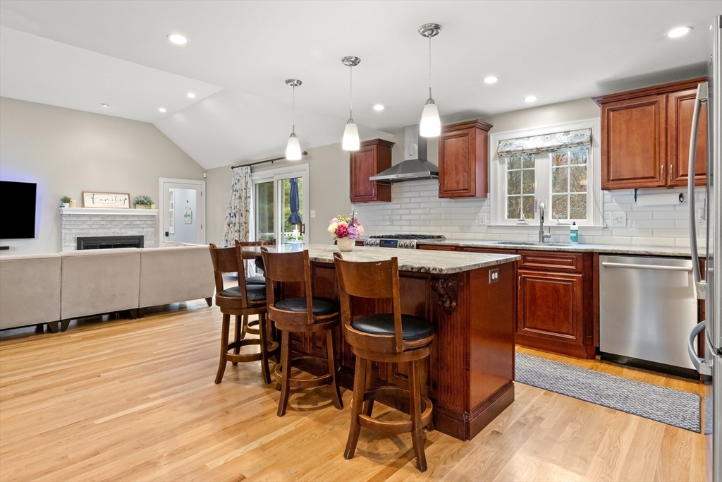 Immaculate Renovated home on 2.25 Acres in Prime Andover Cul-de-Sac. Every major system updated- insulation, walls, ceilings, electricial, & plumbing. Expanded family room, with new mudroom and farmers porch. Recent hardwood floors in kitchen & family room. Open concept kitchen, dining & family room. Custom designed kitchen boasting an island that seats 4, plus stainless appliances. Formal living room. Luxurious bath with steam shower. High-efficiency heat pump, gas furnace with AC. On-demand hot water, and Energy Recovery Ventilator for year-round comfort. Bonus space above garage for storage or add a dormer, to make it ready to finish. Full walk out basement with expansion potential. Relax on the 20 x 12 AZEK deck overlooking private wooded grounds. Generator hookup. Town water and sewer. Fantastic location. Minutes from routes 93, 213 and 495. Shopping, restaurants, entertainment and tax free NH. Showings begin at open house Sunday Nov 16th.