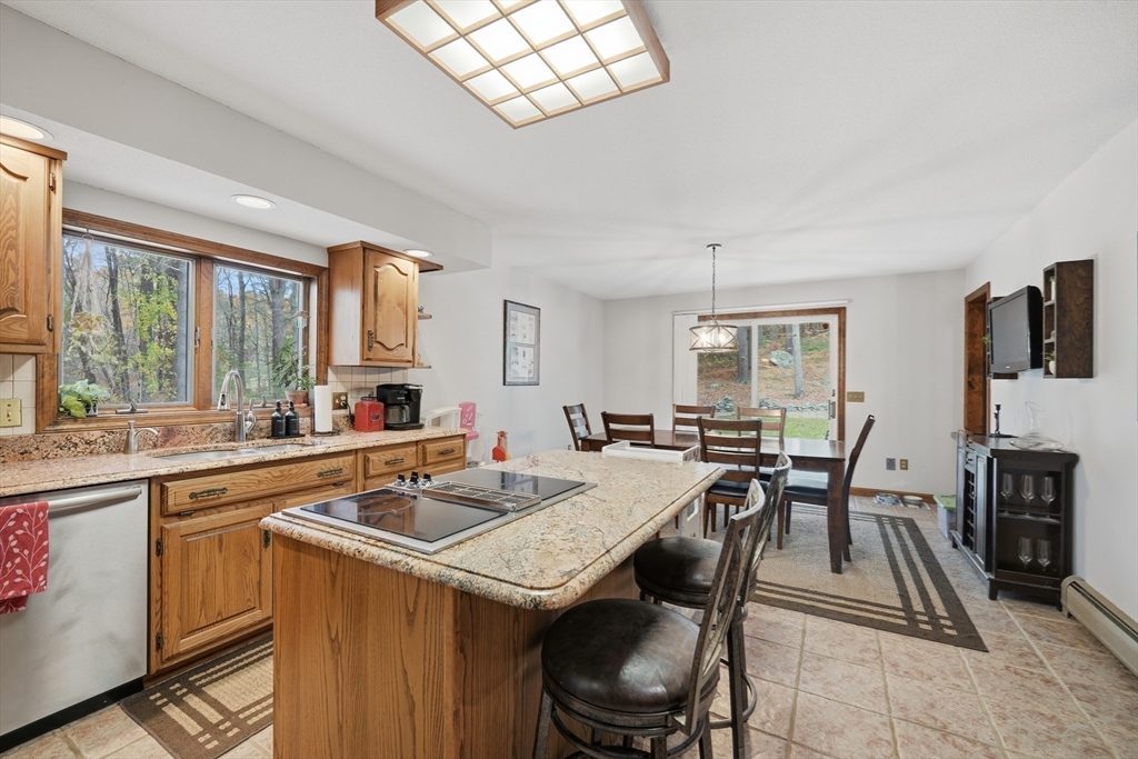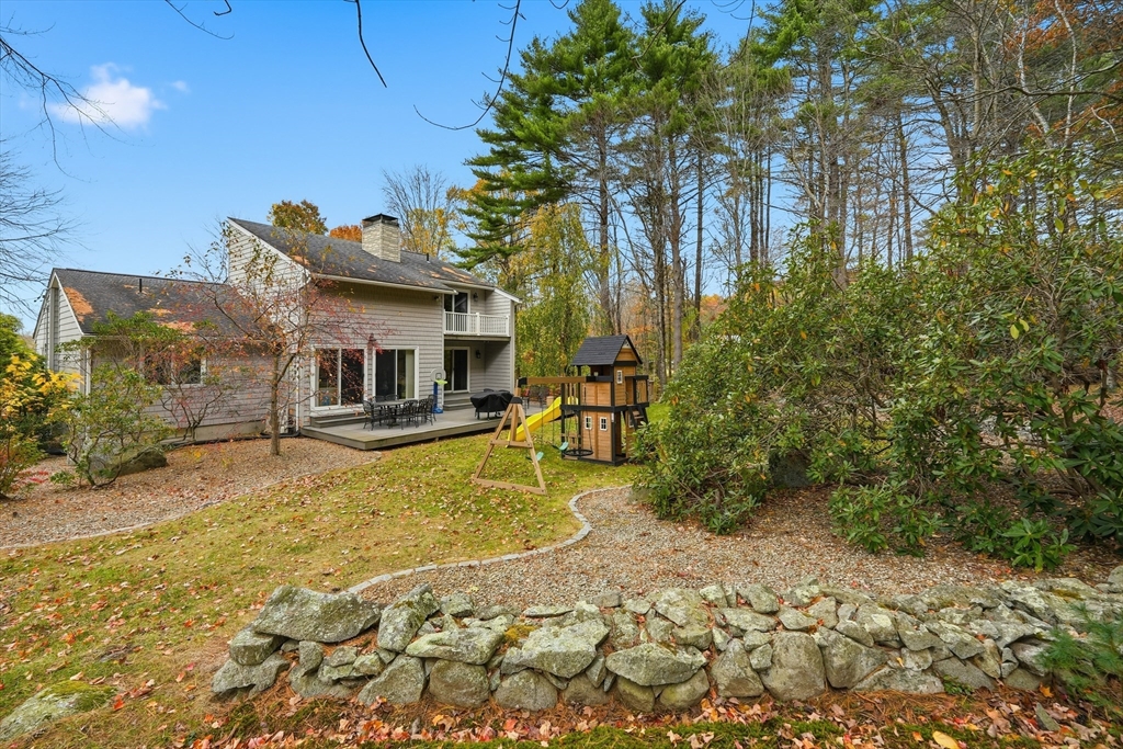 Discover Your Dream Home on Hillside Drive! Nestled on beautifully landscaped grounds, this stunning contemporary residence blends spacious elegance with modern charm. Step inside to a sun-drenched grand living room featuring a cozy fireplace, perfect for relaxing evenings. The kitchen offers granite countertops, stainless steel appliances, and abundant cabinetry and flows seamlessly into the dining area. The main level also includes two generous bedrooms with walk-in closets, a full bathroom, and a convenient laundry room/mudroom. Upstairs you will find a sweet office area and an impressive primary suite complete with ensuite bathroom, ample closet space, attic storage, and a private balcony. Additional standout features include: a Harman pellet stove, a large Trex deck, an irrigation system, a new efficient heating system, and a generator hookup for peace of mind. Meticulously maintained & move-in ready, the peaceful property is a true gem! Open Saturday,11/15 & Sunday, 11/16 11-1.