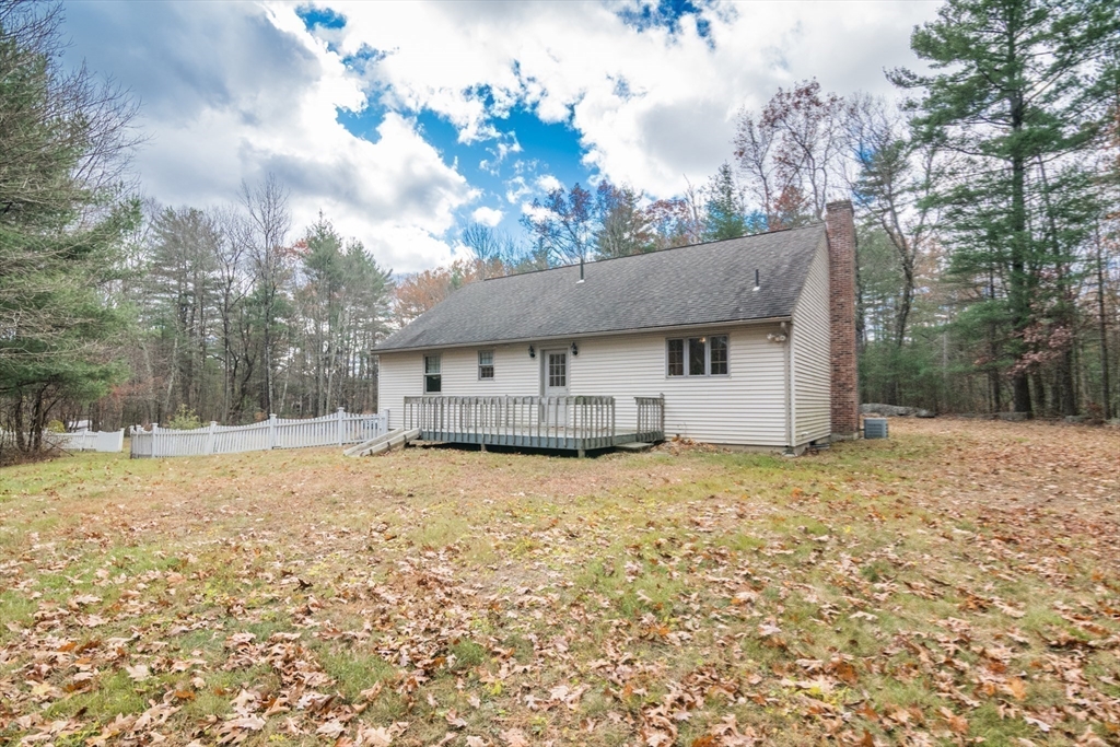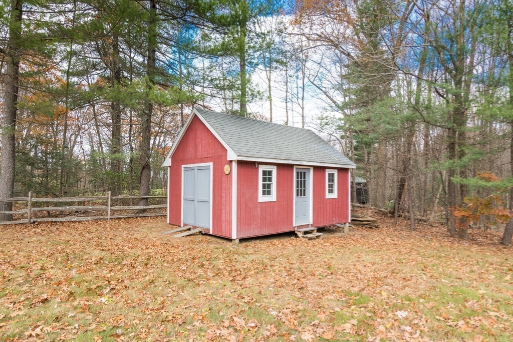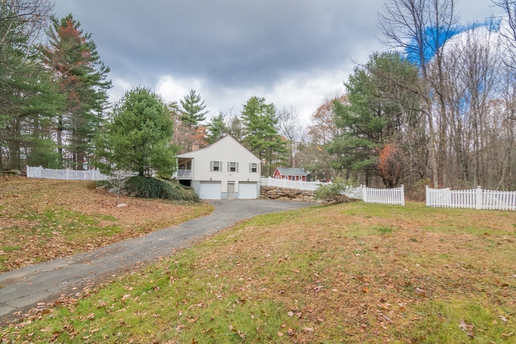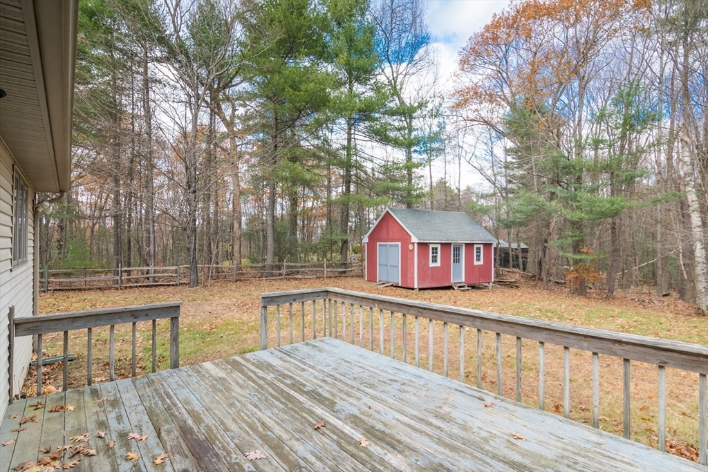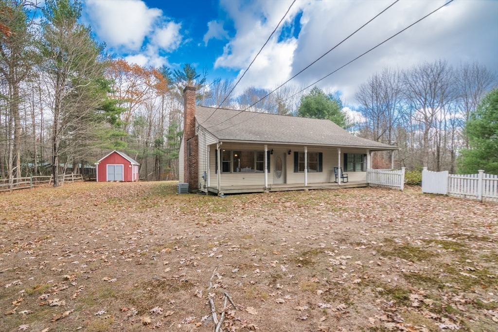 Tucked away on acreage, this 1990s Ranch blends open concept living with rural ease. Stone walls, mature trees, and white picket fences bring you to the front porch to unwind and soak in nature's beauty. An open floor plan with a Cathedral ceiling, a living room with a fireplace with a wood stove insert, and a front-facing picture window creates a warm and inviting living space. The eat-in kitchen and dining room offer flexible options for meals and entertaining. Main bedroom leads to a bathroom with a shower. Half bath with first-floor laundry adds convenience. Bring ideas to the unfinished basement with storage leading to a two-car garage. Enjoy the back deck, spacious yard, and shed to store tools and toys. With conservation trails and Lake George access within two miles, this peaceful retreat is bound to please. Ample parking makes it easy to welcome guests. First showings at open house Sunday, November 16, from 10 am to 12 pm. Don't miss it!