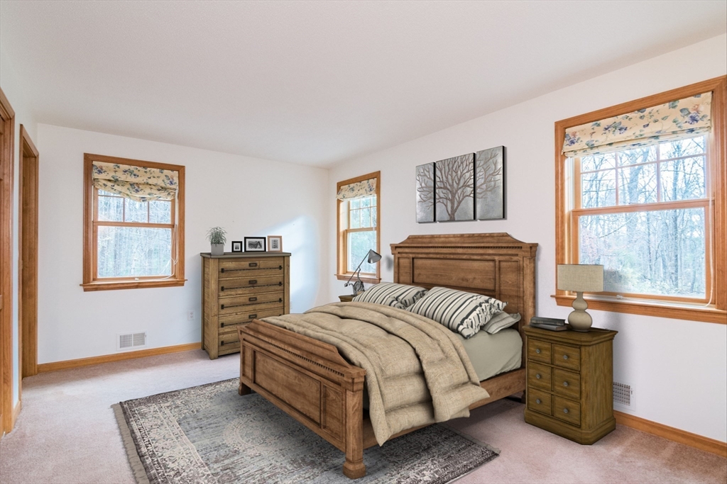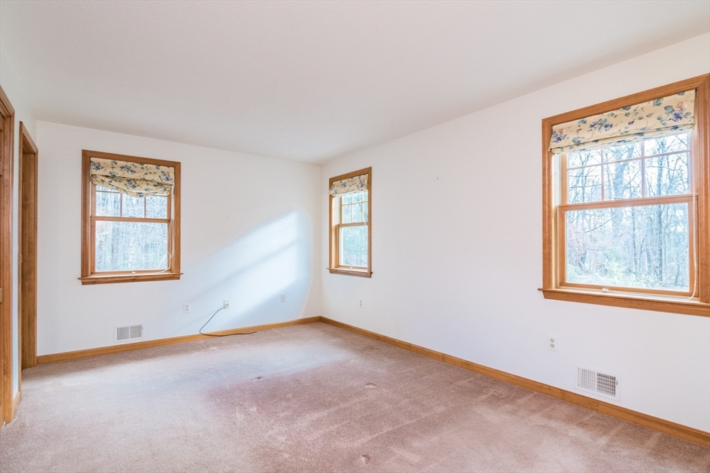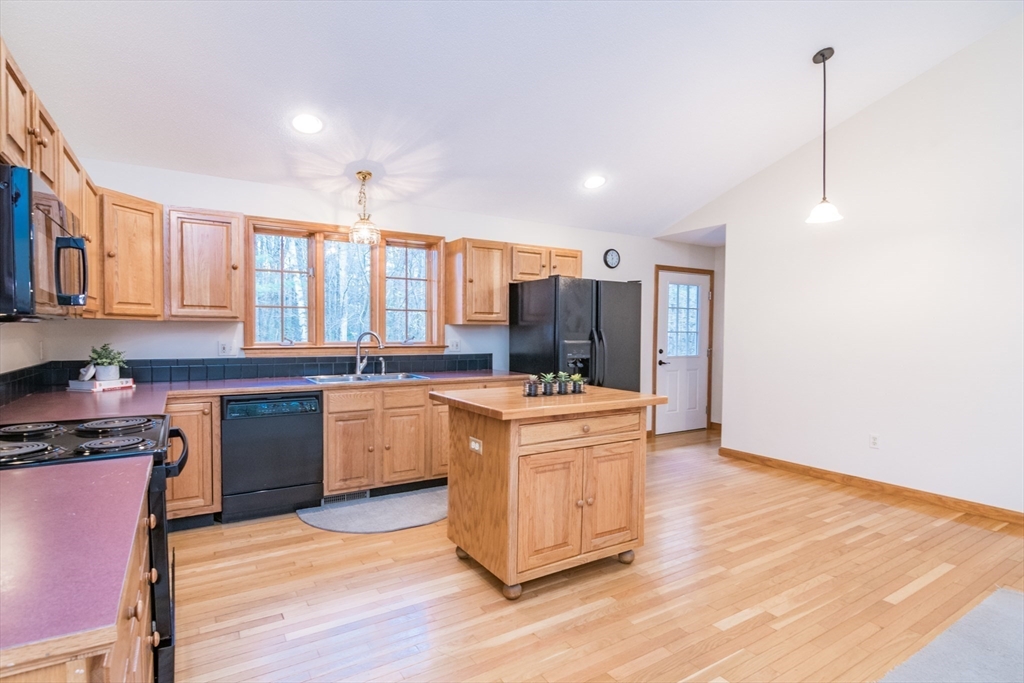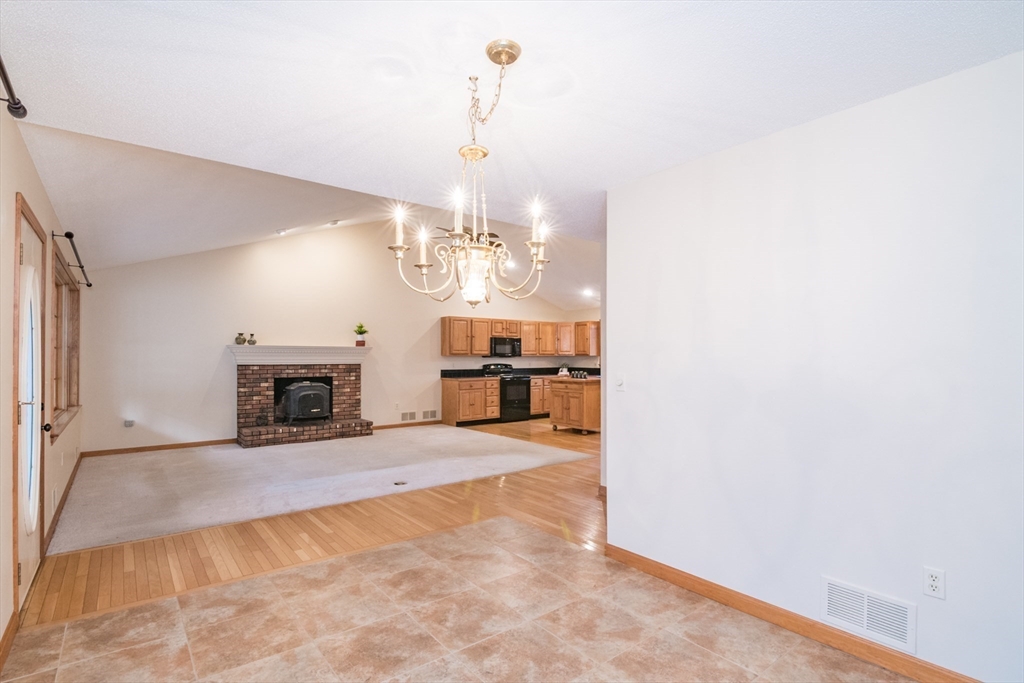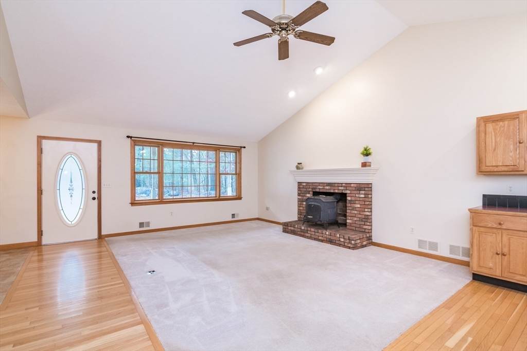 Tucked away on acreage, this 1990s Ranch blends open concept living with rural ease. Stone walls, mature trees, and white picket fences bring you to the front porch to unwind and soak in nature's beauty. An open floor plan with a Cathedral ceiling, a living room with a fireplace with a wood stove insert, and a front-facing picture window creates a warm and inviting living space. The eat-in kitchen and dining room offer flexible options for meals and entertaining. Main bedroom leads to a bathroom with a shower. Half bath with first-floor laundry adds convenience. Bring ideas to the unfinished basement with storage leading to a two-car garage. Enjoy the back deck, spacious yard, and shed to store tools and toys. With conservation trails and Lake George access within two miles, this peaceful retreat is bound to please. Ample parking makes it easy to welcome guests. First showings at open house Sunday, November 16, from 10 am to 12 pm. Don't miss it!