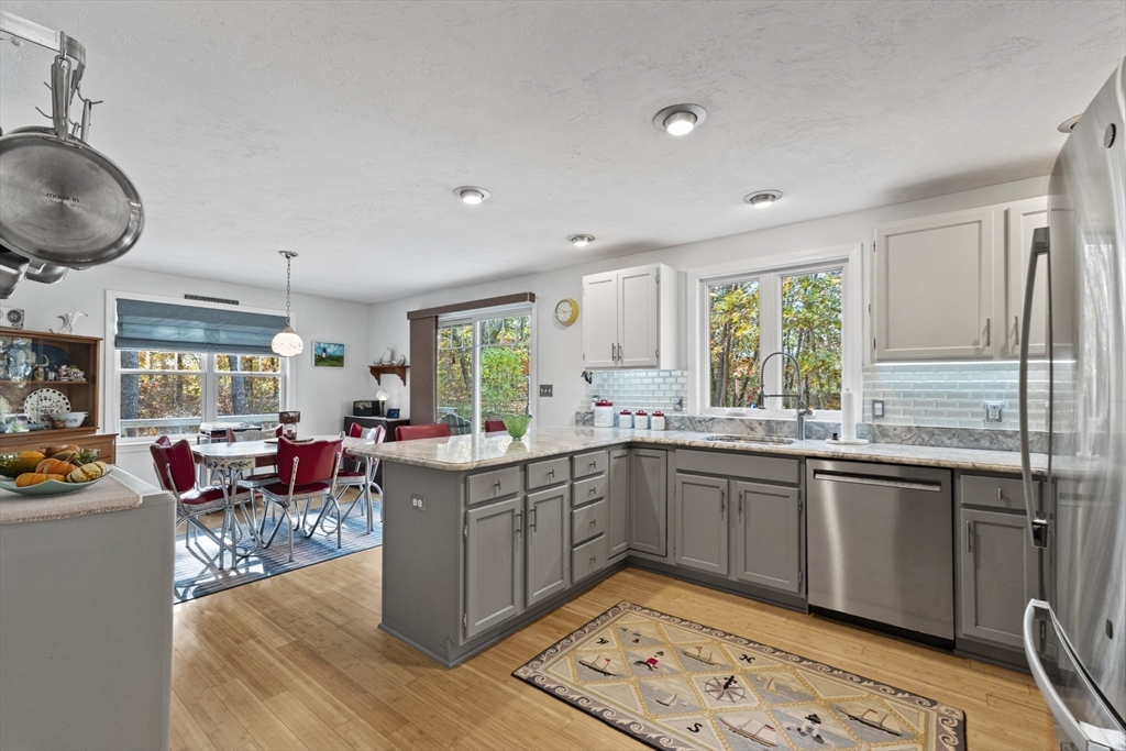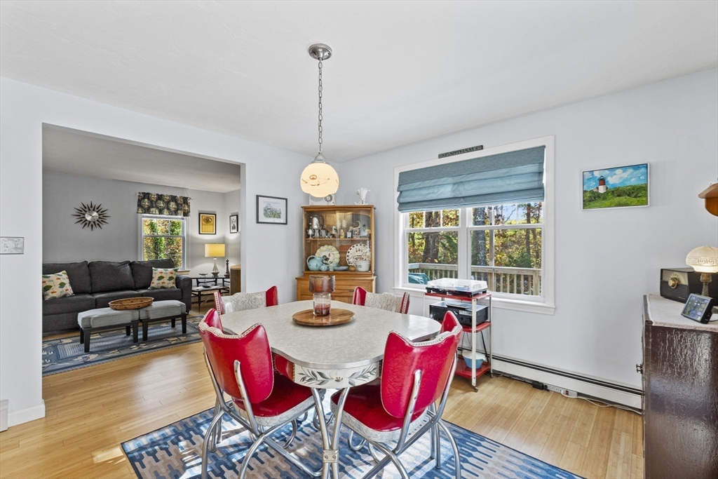 Welcome home to charming Cape Cod living! Nestled on a peaceful cul-de-sac, this 3-bedroom, 2-bathroom gem is your perfect Massachusetts retreat! The main level offers a wonderful flow, starting with a cozy living room that leads directly into the nicely updated kitchen. Here, you'll find granite countertops, stainless steel appliances, and a breakfast bar, all overlooking the sunlit dining room with slider leading out to your expanded deck to just sit back, relax and enjoy nature. A spacious family room and a full bath complete the first floor. Upstairs, discover three comfortable bedrooms, including a spacious primary bedroom illuminated by skylights. A second full bathroom is conveniently located off the hallway. The backyard is an outdoor haven, featuring a deck, firepit, storage shed, and an outdoor shower - perfect after a day at the beach! You're just minutes from Nauset Light Beach, Rail Trail and countless local amenities. Don't miss this slice of coastal New England paradise!