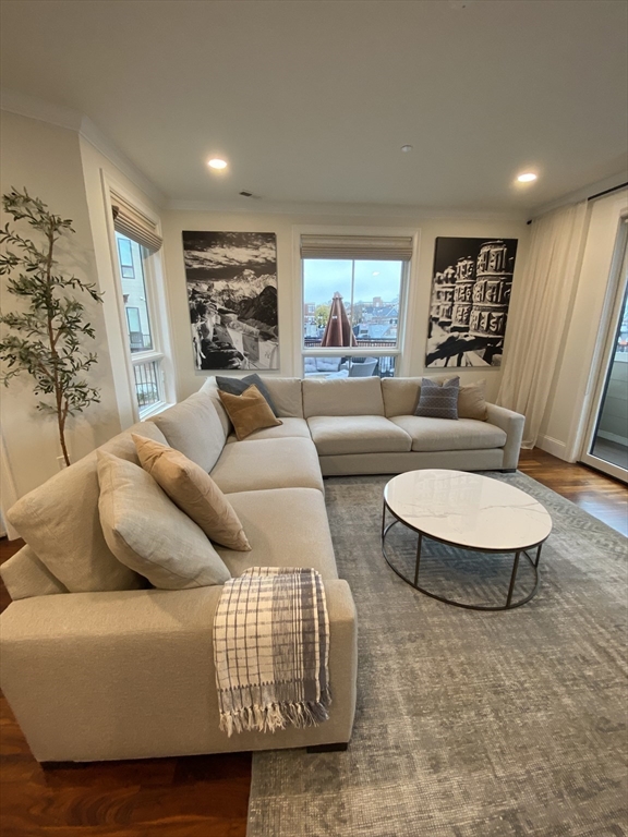 519 Broadway 201, Somerville, MA 1 Bed | 1 Bath | Corner Unit with Private Patio. Welcome to 519 on Broadway, Somerville’s newest luxury residential building offering modern design and exceptional amenities. This corner 1-bedroom, 1-bath home features a "chef’s kitchen" with waterfall quartz countertops, GE Café stainless steel smart appliances, custom cabinetry, a custom-built-in wine fridge, and hardwood floors throughout. Enjoy custom-installed electronic shades, a Juliette balcony, and a large private outdoor patio—perfect for entertaining or relaxing. The open-concept layout and floor-to-ceiling windows fill the space with natural light. Located directly across from historic Trum Field, this residence includes outdoor parking and access to five floors of sophisticated amenities, including: Skyview Observation Deck with a community kitchen and panoramic Boston skyline views, Fitness center, Coworking space, Private screening room, and private storage locker.