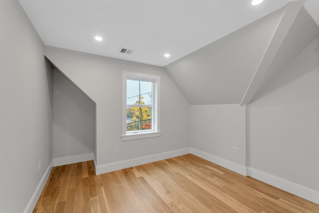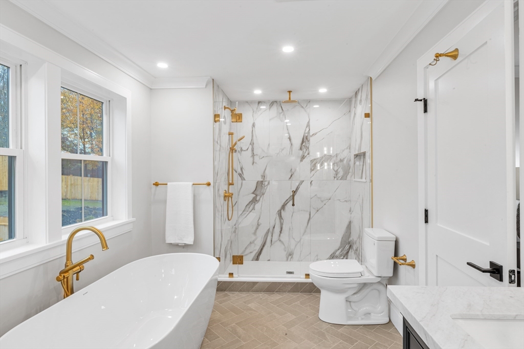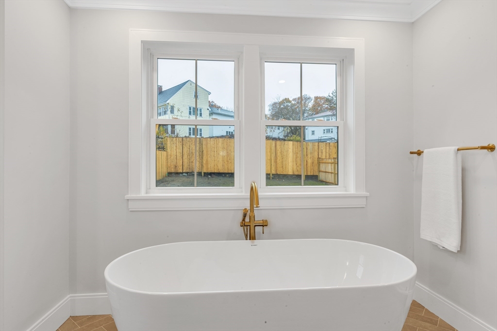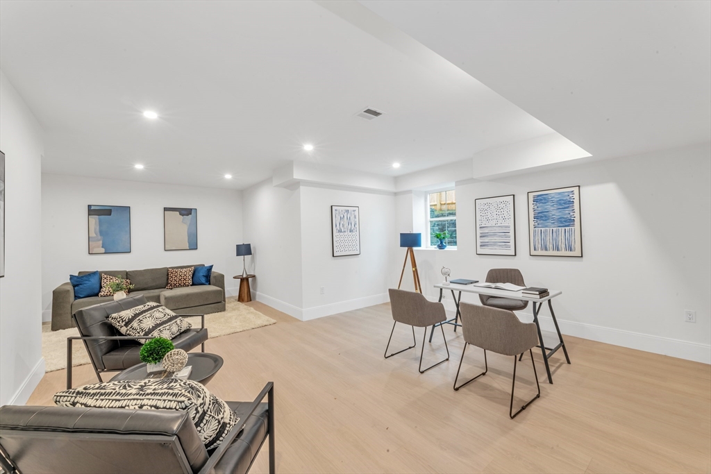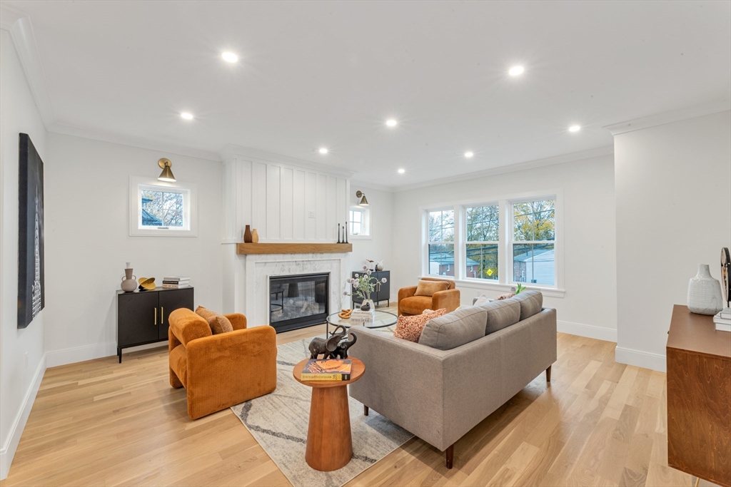 A rare new construction home in Roslindale, meticulously crafted by a local luxury builder and thoughtfully designed by *Kerry Driscoll Design* . This stunning residence showcases 3 levels of living boasting a bright, open design plan with upgraded wide-plank white oak flooring throughout, a designer kitchen with custom cabinetry, bar area w/bev cooler, gas fp lv room with marble mantle and built-ins and a sunroom that seamlessly extends to a outdoor patio complete with a gas line for grilling, perfect for entertaining.The upper level offers 4 bedrooms including a serene primary suite featuring a spa-inspired bath with solid stone flooring and shower, stylish fixtures and a massive walk-in closet, laundry room and full bath with tub wrapped in porcelain tile. The lower level provides a two-car garage with an attached flex space ie. gym/office, blending convenience with modern living. Every detail has been elevated, from the high-end finishes to the carefully curated design elements.