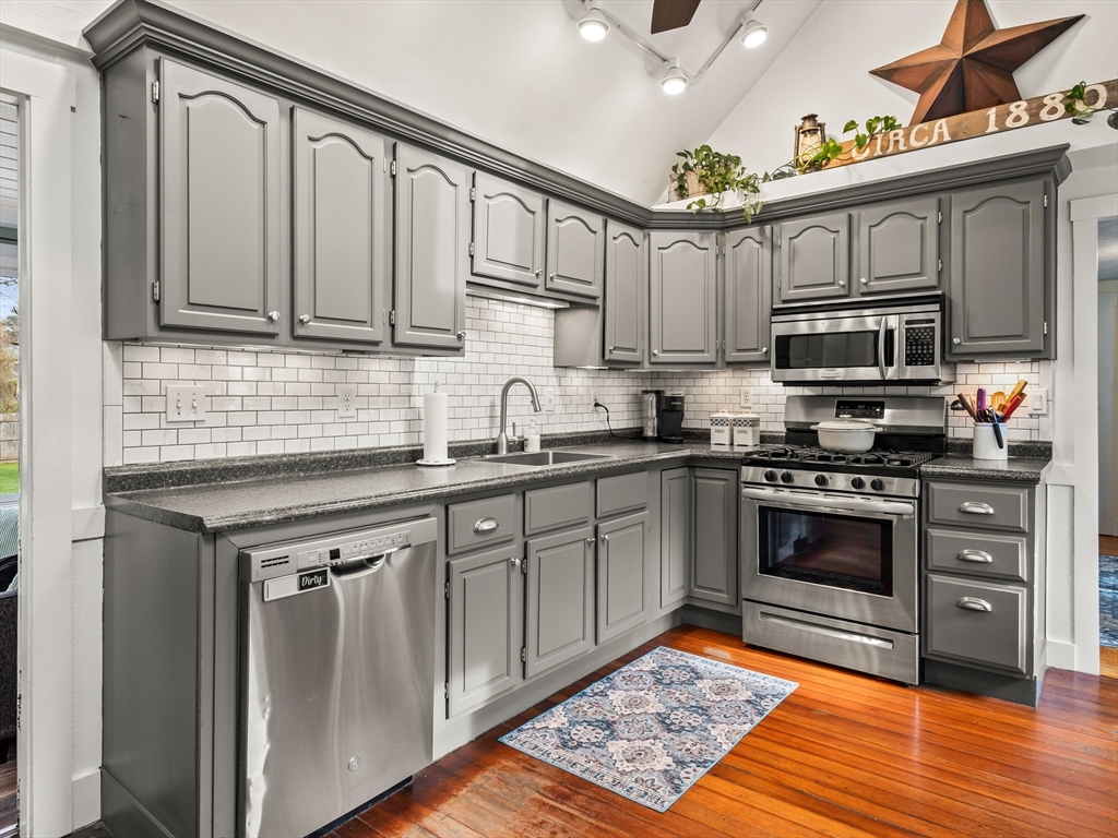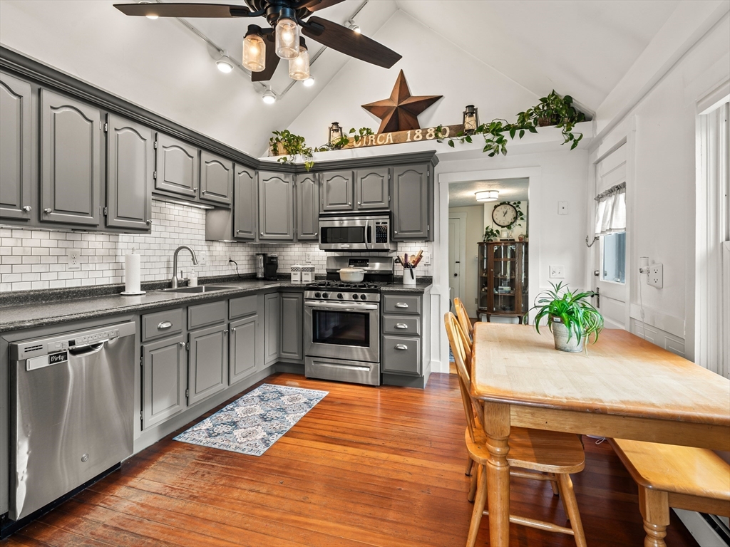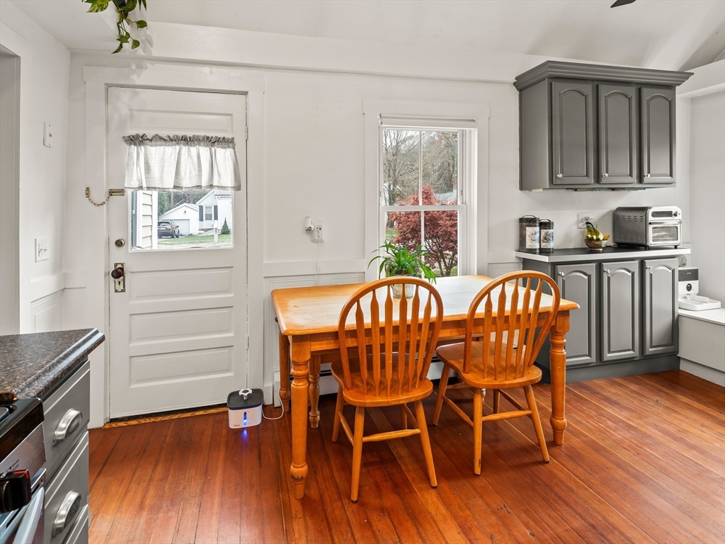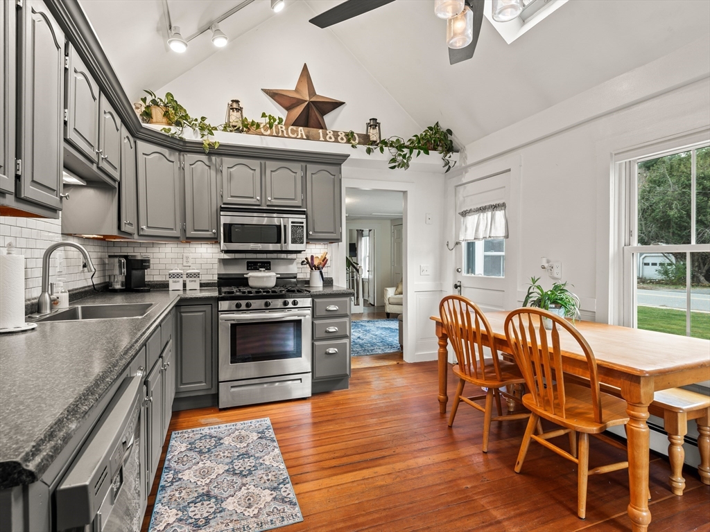 Charming antique colonial in the heart of Woodville. This 3 bedroom home features a main level with rear entry sunroom, a cathedraled ceiling kitchen with lots of cabinet space, a cozy living room with beautiful pine floors and a 1st floor bedroom with half bath. The 2nd floor offers 2 additional bedrooms and a large bathroom. Outside enjoy a meticulously maintained yard with lush green grass, mature plantings and a large storage shed. This home provides a fantastic blend of antique style & comfort! Call today to schedule your private showing!