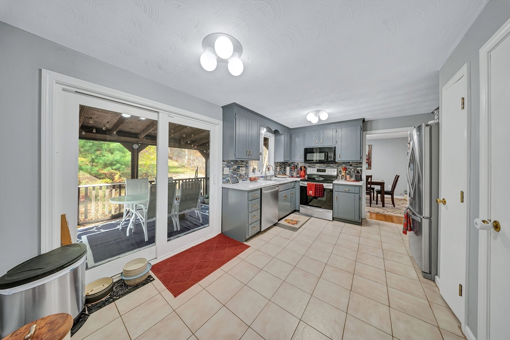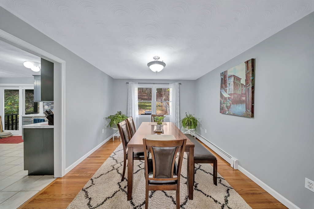 Welcome to this beautiful 3-bedroom, 1.5-bath Colonial nestled in the peaceful town of Franklin. Situated on a spacious 1.76-acre lot, this property offers exceptional privacy and your own personal wooded oasis. Step into the inviting foyer, a classic hallmark of a true Colonial home. The first floor features a comfortable living room, dining room, family room with a wood stove, kitchen, and a half bath with laundry. Beautiful, well-maintained hardwood floors enhance most of the rooms. The kitchen is generously sized and includes space for a second dining area, with direct access to the covered deck, patio, and backyard, perfect for relaxing or entertaining. Upstairs, you’ll find three spacious bedrooms and a full bath. The primary bedroom is impressively large and includes a walk-in closet. The full walk-out basement offers the potential to expand the living area, ideal for a family room, game room, or additional storage. Located near trails, parks, restaurants, and Route 495.