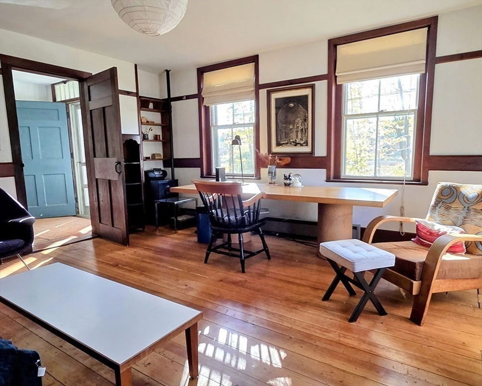 This extraordinary 1840 Shaker home served as a dwelling for the Shakers, as an inn for visitors, an office and store—used by the current owner as a spacious residence since 1956. The layout includes 4 finished living levels plus walk-up attic and a sub-basement for utilities. Preserved built-in cabinets and pegboard found throughout the house exemplify the fine craftsmanship that the Shakers were renowned for. A large living room features a fireplace and historic built-ins. There are numerous bedrooms, 2 full and 2 half baths, and a host of rooms that can serve as a home office, a studio, playroom, home gym, a workshop and more. A 3-season porch at 2nd level height, has a 3-bay garage below. Set on 2.3 acres on a quiet residential street in Harvard Shaker Village. Come discover Harvard–with plentiful conserved public lands, fine schools, a pond for swimming and boating, access to highway and rail, in a quaint town offering a wonderful sense of community.