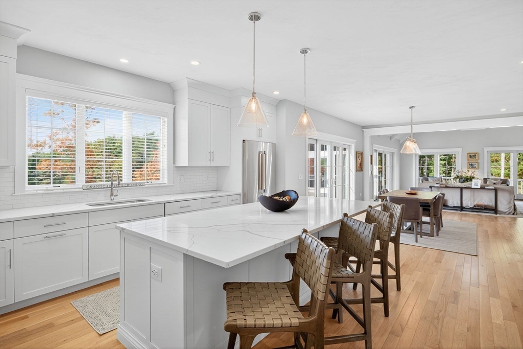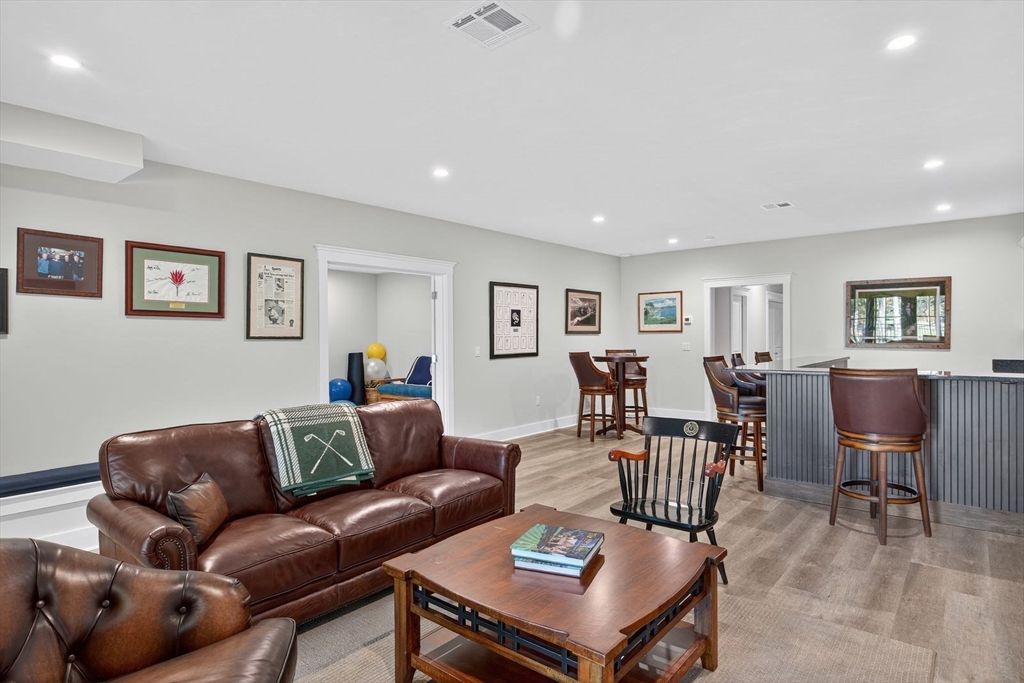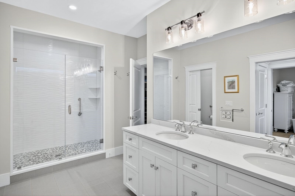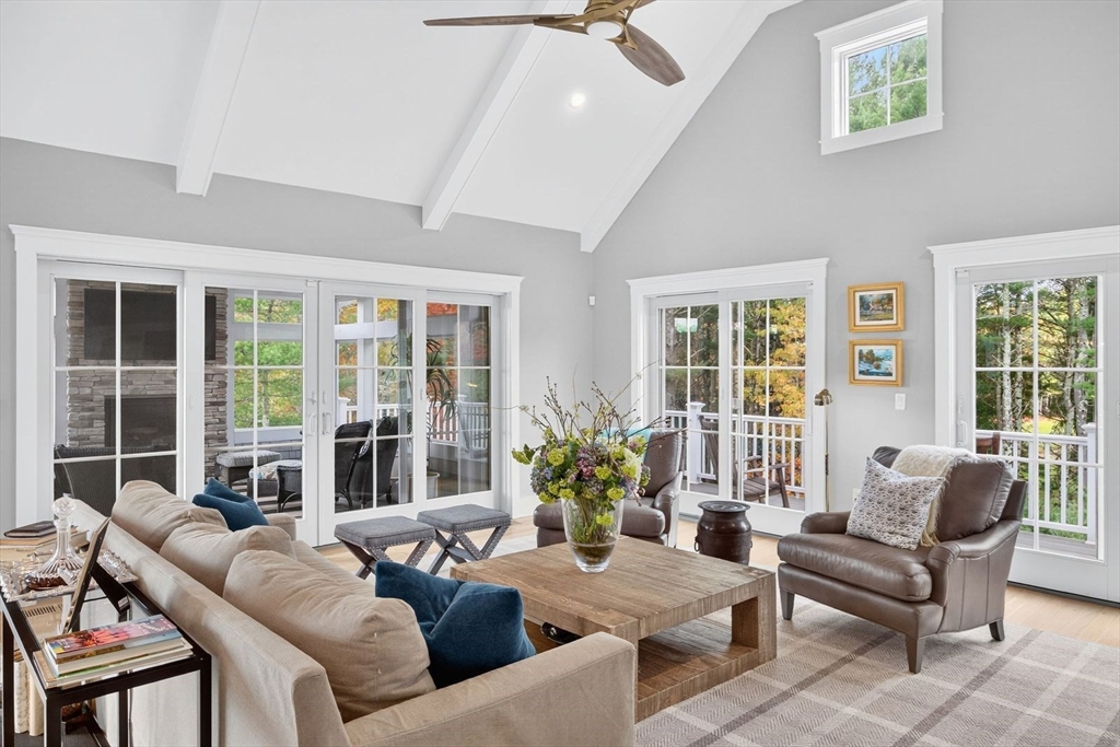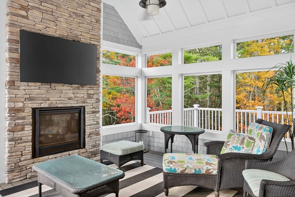 This stunning cottage by Whitman Homes, is located in The Pinehills. Sellers spared no expense for this professionally custom designed 3 bedroom, 4.5 bath home. You'll love the oversized end lot to enjoy the wrap-around covered porch, fenced yard, and large patio for entertaining. Inside, find a spectacular chef's kitchen w/ quartz counters & custom cabinets, a wine fridge, dining area with slider to outdoor patio, an office, oversized family room with gas fireplace & vaulted beamed ceilings, a screened in porch with fireplace. The primary suite is located on the main floor with w/ ensuite with 2 water closets, 2 large closets with built-ins and private access to the laundry room. Second floor has a sizeable loft with guest bedrooms and a full bath. In lower level, there is a large entertainment style bar and game/great room, with an exercise room and full bath. The HOA includes Stonebridge Club, pool, tennis, exercise, clubs and activities. Lifestyle living at it's best!