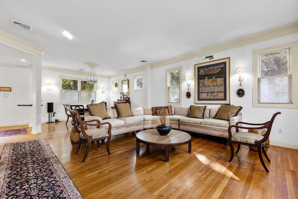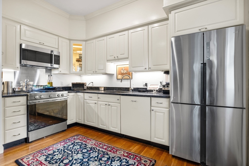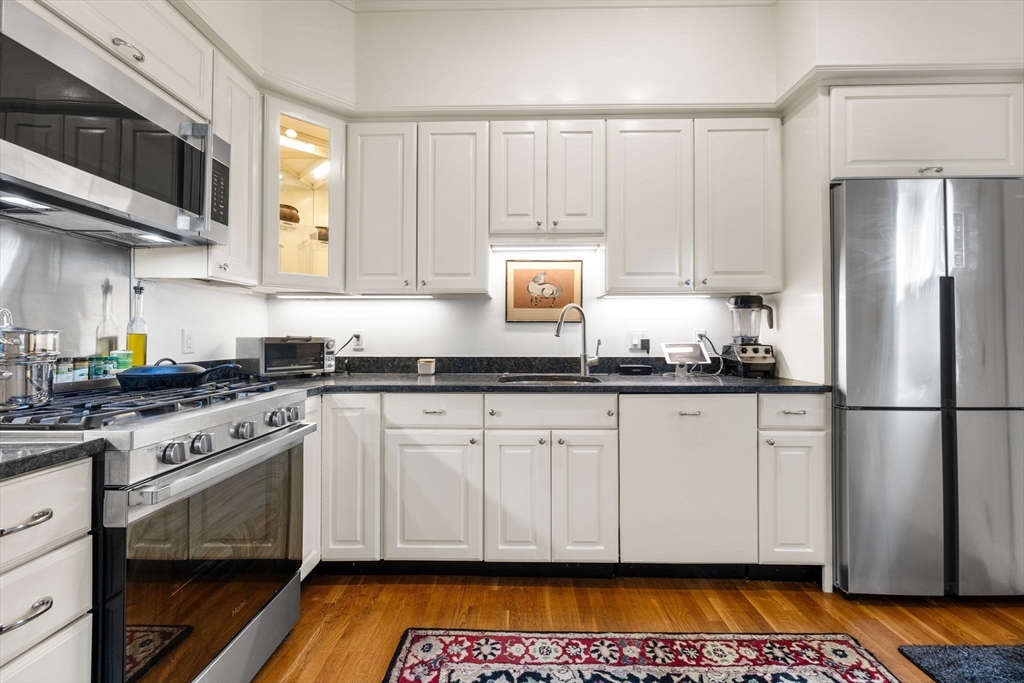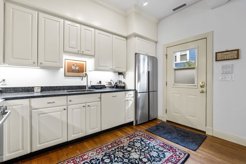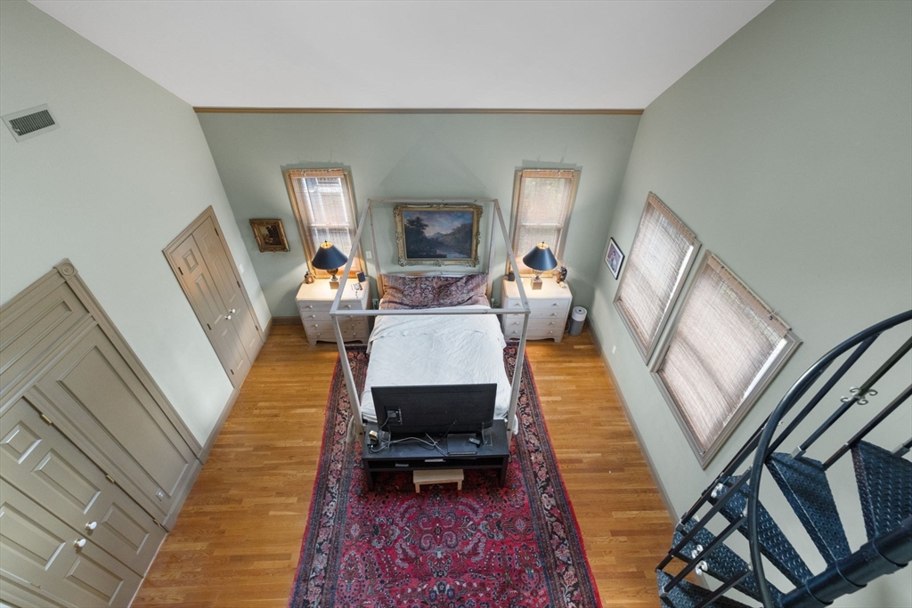 This unique Somerville townhome has over 2,300 sq. ft. of living space with a design that has thoughtful and tasteful detail. Featuring a pavilion-style kitchen accented in soft cream tones, custom crown moldings and a custom-built table, this unit is ideal for gathering and entertaining. Four spacious bedrooms and 2.5 baths span multiple levels. Plenty of skylights fill the unit with ample lighting. And a spiral staircase connecting the primary suite, with soaring 19ft high ceilings, to a private loft with extra storage or room for an office. For your viewing pleasure one bedroom has been converted into a home theatre/music room with a mini kitchen. Outside, enjoy rare yard space that feels like a garden retreat with a 6 person sauna, a patio and extra bike storage. Parking for three cars which is rare in Somerville. And a location on the Cambridge/ Arlington line- this property combines comfort, style, and convenience.