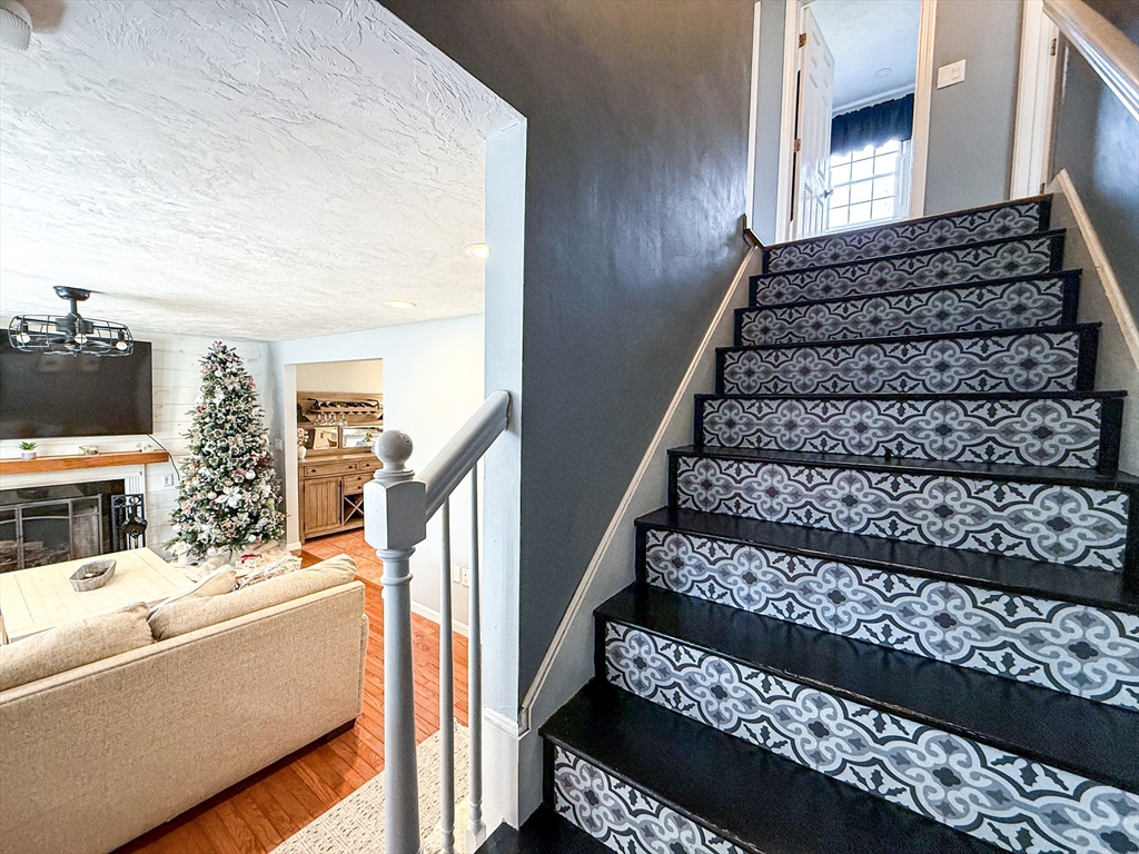 This charming Colonial in a sought-after neighborhood offers the perfect blend of comfort, style, and endless possibilities. A welcoming farmer’s porch invites you inside, where the cozy family room showcases a wood-burning fireplace, shiplap accent wall, and gleaming hardwood floors.The open, well-appointed eat-in kitchen features white cabinetry, new granite countertops, a stylish tile backsplash, and sleek new black stainless steel appliances.Upstairs, the spacious primary suite impresses with a vaulted ceiling, wide-plank flooring, an ensuite bath, and a walk-in closet. Two additional bedrooms offer new carpeting, ceiling fans, crown molding, and generous closet space.The finished lower level provides direct access to a beautifully landscaped backyard complete with a new composite deck, saltwater heated pool, and pool house—perfect for entertaining. Additional highlights include first-floor laundry, Nest thermostats, central vacuum, and a front-yard irrigation system.