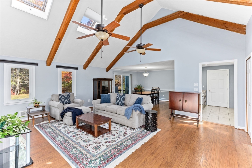 Welcome to Stonebridge Condominium—one of Middleboro’s most sought-after communities—perfectly situated just minutes from shopping, dining, highway access, and the MBTA commuter rail to Boston. This beautifully maintained single-level unit offers a spacious and stylish layout featuring a modern kitchen with granite countertops, stainless steel appliances, and a breakfast bar, a sun-filled cathedral family room, a private dining area with access to the rear deck, two generously-sized bedrooms to include a primary suite with a full bath offering two standard closets plus a walk-in closet (currently used as a laundry area), a second full bath, and an attached one-car garage. The finished lower level provides exceptional bonus space (also with a laundry area) ideal for guests, hobbies, or extended family. Don’t miss this rare opportunity to own in the desirable Stonebridge community!