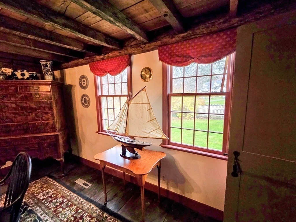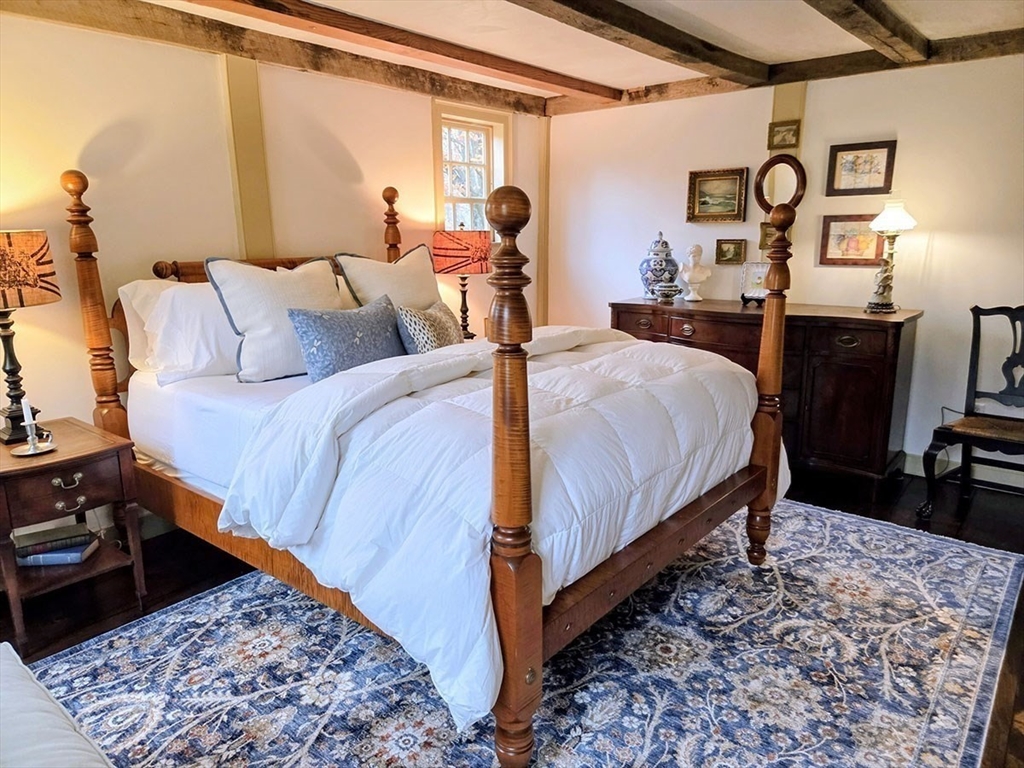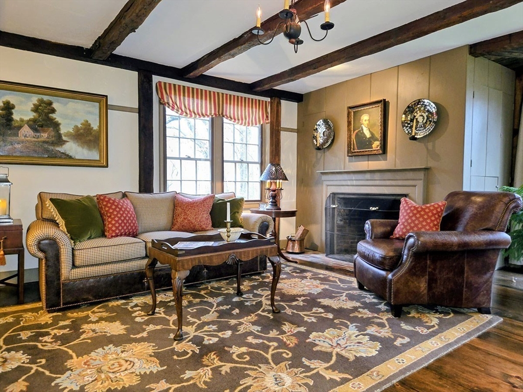 This remarkable early American antique cape circa 1738 was restored by the current owners. Classic historic details include wide plank floors, a massive center chimney with multiple fireplaces, and exposed gunstock post and beam framing. Original historic woodwork components are architecturally integrated with an updated kitchen design that seamlessly complements the antique home. The 8-room layout includes four fireplaces, dining room, library, sitting room, a large family room that is open to the spacious kitchen featuring a generous island with seating, 2 bedrooms and a mudroom laundry. The second level awaits your finishing ideas with four potential rooms with rough plumbing for a bath. A separate1000 sf 3 room ranch house offers a single level accessible apartment ideal for an in-law, potential rental, home office or studio with an attached garage. Situated on over 10 acres which affords great privacy, the land consists of lawn, gardens and wooded areas with marsh to the rear.