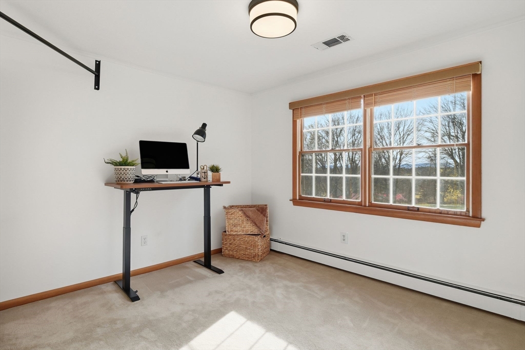 Home for the Holidays! This well-cared-for Colonial nestled in a quiet and highly sought-after Leeds neighborhood has everything on your wishlist! The main level boasts a cozy living room, a cheery, updated kitchen, dining room, an office/den with TONS of built-ins and brand new carpet, a half bath and a mudroom/laundry room with even MORE storage and covered access to a 2-car garage. Upstairs a serene primary ensuite awaits! 4 more spacious bedrooms with ample closet space and another full bathroom round out the 2nd floor. Enjoy the expansive backyard and distant mountain views from the 3 season porch, porch swing or hot tub! A fenced garden and raised beds add to the genuinely usable outdoor space. Addt'l features include a whole house generator, recessed lighting, and new siding/paint on back of house. Only minutes to Leeds Elementary, Look Park, the Rail Trail and everything Northampton has to offer! Space, comfort and style! This one won't last! 1st Showings - SAT 11AM-1PM.