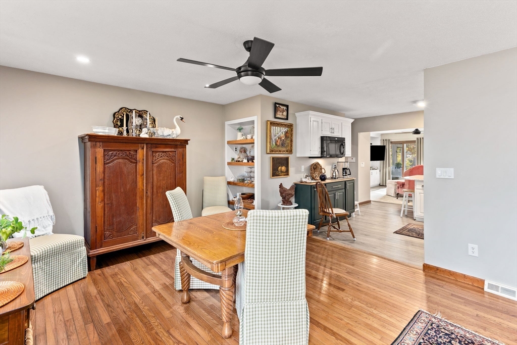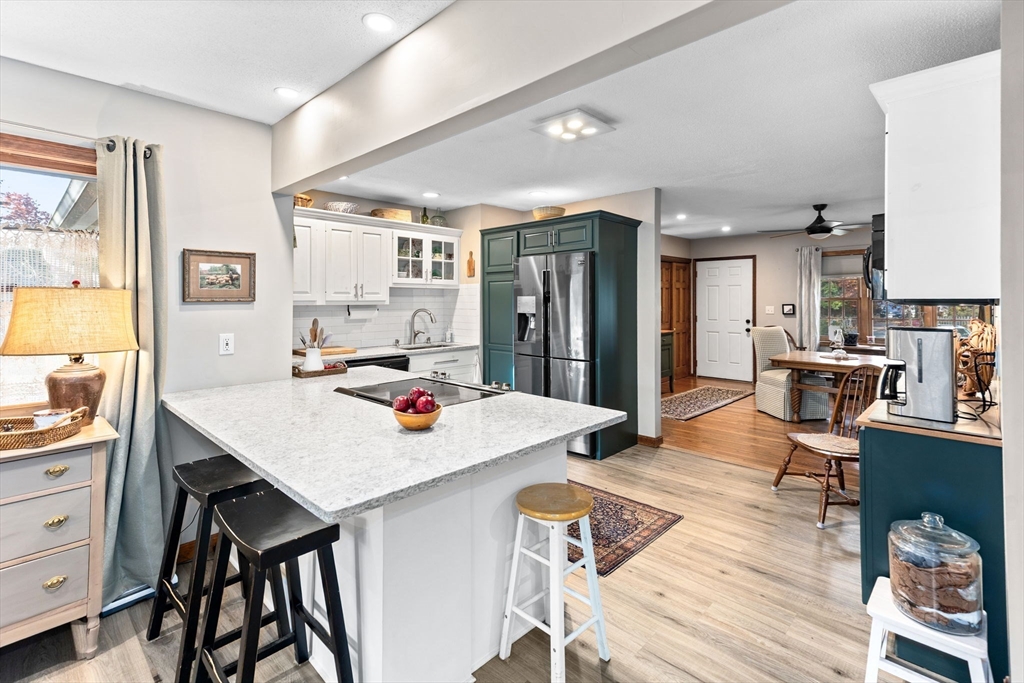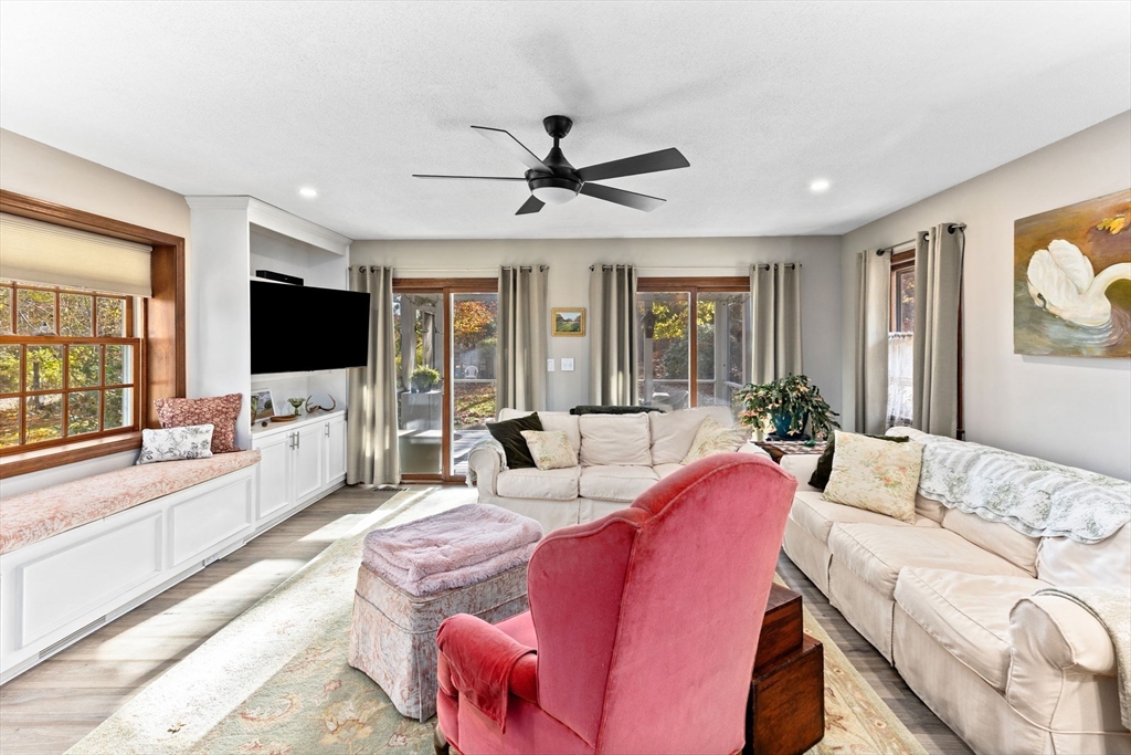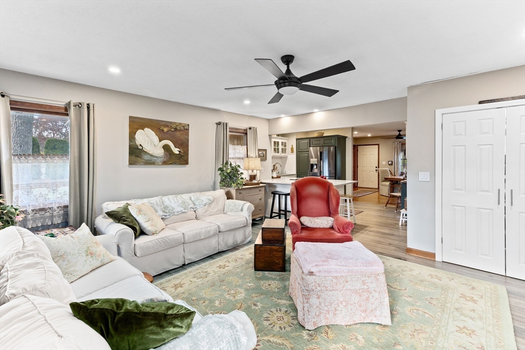 OPEN HOUSE 11/15- 1 PM-3 PM-Charming open floor plan has a great flow with convenient access to highways, shopping, and the commuter rail. This well-maintained residence features 3 bedrooms, 1.5 baths. Enjoy the open-concept dining room, family room, kitchen and gorgeous sunroom overlooking the gardens and a brick patio. The modern updated kitchen includes lots of cabinets and upgraded countertops. All appliances are included. The home is situated on a gorgeous country road, providing privacy yet the neighbors are close-by which offers a wonderful neighborhood feel. Enjoy hardwood and engineered hardwood floors throughout, built-in shelves, window seat and ample storage. The spacious basement provides extra storage, along with a newer electric panel and generator switch. Set on a private lot, this home combines modern comfort, functionality, and convenience—come see and fall in love! Updates: 2021-renovated family room and kitchen, 2018-Septic, A/C, furnace and oil tank, 2014-Roof.
