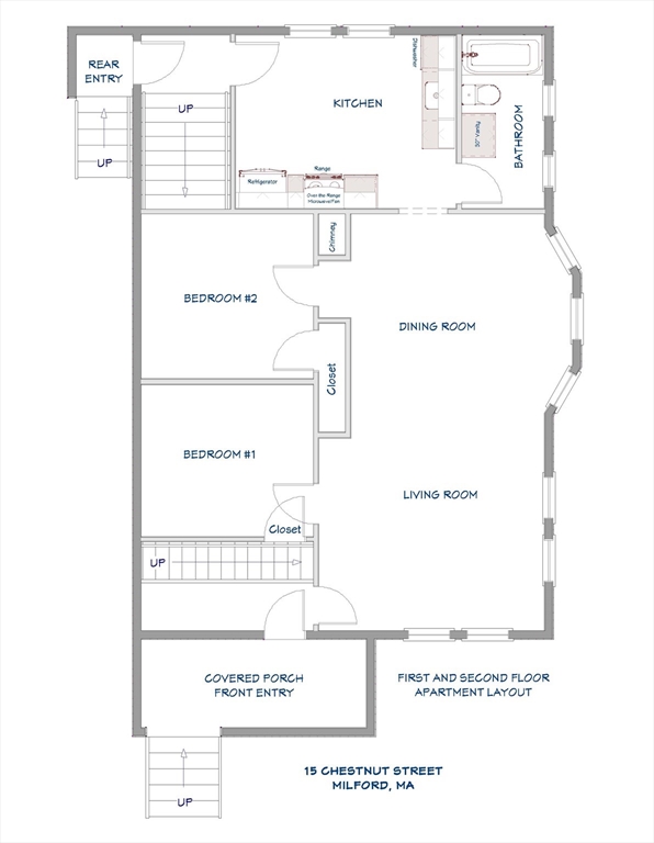 Charming & newly renovated 2 bedroom, 1 bath unit located in two family home, near town center. Approx. 1,100 square feet of light & bright, 2nd floor living space. New vinyl plank flooring throughout the unit, new kitchen & bathroom, all new appliances, freshly painted top to bottom! All new HVAC including central AC! Spacious dining area and living room. Bonus room on the third floor perfect for home office, third bedroom or playroom. This is a walk-up (no elevator in building). Tenant pays gas heat, electric and cable. Water, sewer, trash and snow removal included. Free washer & dryer in common laundry room in basement. Two assigned off-street parking spaces (tandem). Walking distance to downtown amenities and easy commute with public transportation and highways close by! Enjoy a grassy backyard perfect for play or bbqs! Small pets considered. No smoking in unit or on property. Please have good credit and documented/verifiable income. Be the first to live in this brand new unit!