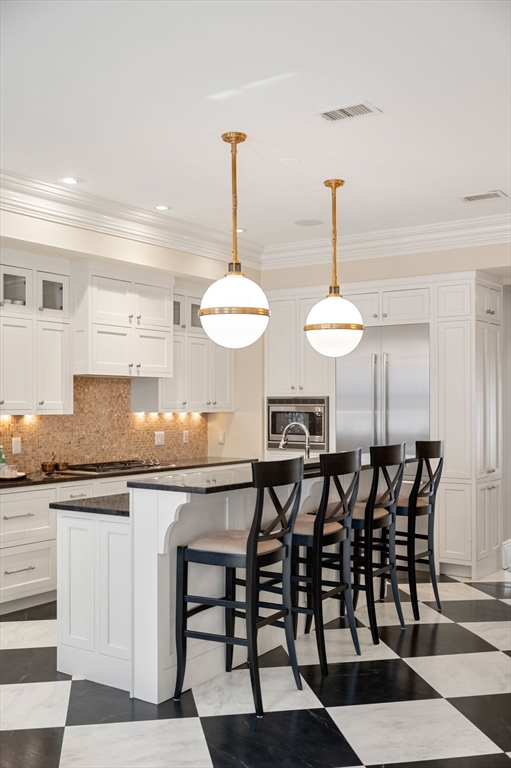 Beautifully maintained 4-bed, 4-bath upper triplex offering over 4,000 sq ft in a historic Marlborough St home. The main level includes a formal living room with floor-to-ceiling windows, custom kitchen with Wolf & Thermador appliances, dining banquette, and family room with fireplace. The full-floor primary suite features a luxurious bath with soaking tub, steam shower, dual vanities, walk-in closet, and sitting room with 2 fireplaces. The top floor includes 3 additional bedrooms, a full bath, laundry room, and storage. A newly built private roof deck with skyline views sits atop a fully replaced roof. Includes 6 fireplaces, artisan finishes, and 2 direct-access deeded parking spaces. The common entrance leading into Unit C has also been fully renovated, providing a fresh and refined welcome. Prime Back Bay location near the Quin House, Newbury St, the Esplanade, and top universities