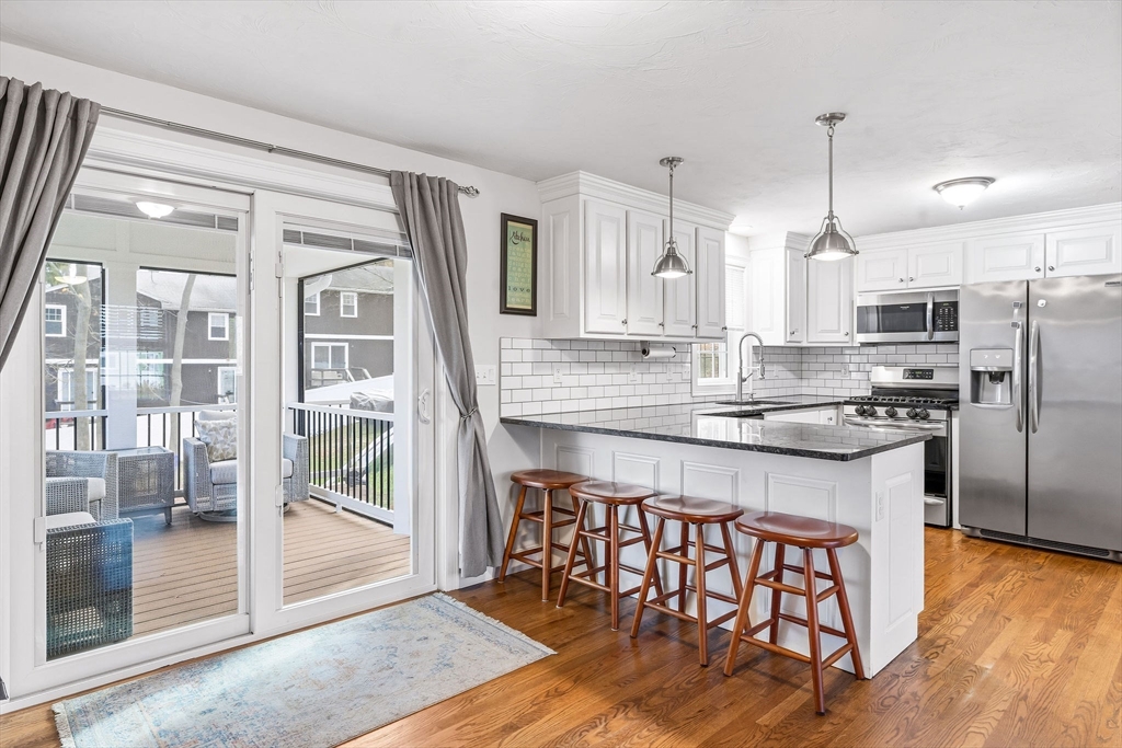 Welcome to this classic 4BR, 2.5BA Colonial with a bright, open floor plan perfect for entertaining! The spacious living room flows into an eat-in kitchen featuring granite counters, SS appliances & a large breakfast bar. A formal dining room & half bath w/laundry complete the main level. Upstairs offers 3 generous bedrooms, including a primary suite w/walk-in closet & private bath. Partially finished lower level adds bonus space for an office or guest room. Enjoy the screened-in porch overlooking a fully fenced yard—great for relaxing or gardening. Conveniently located near Rt 2, shops & restaurants! Offer deadline is Tuesday 10 am.
