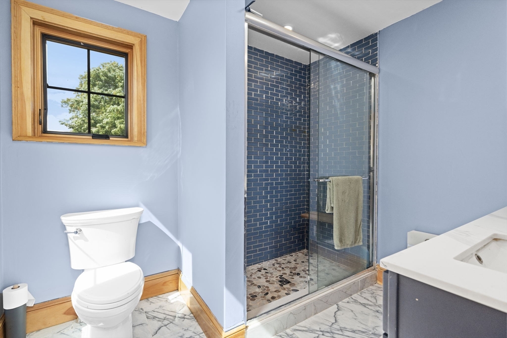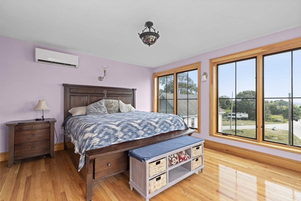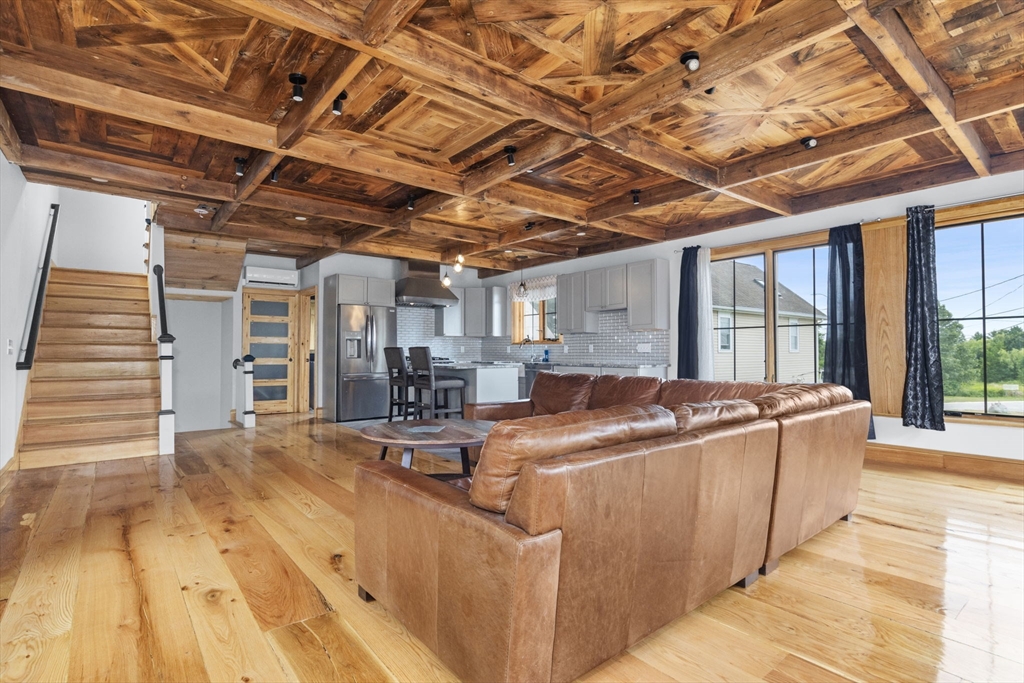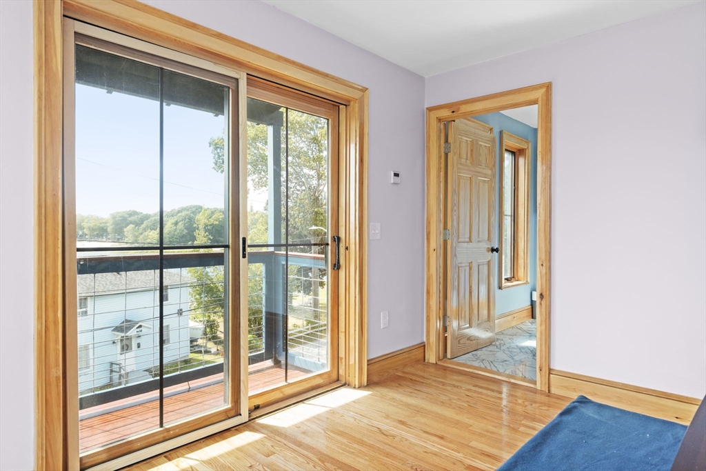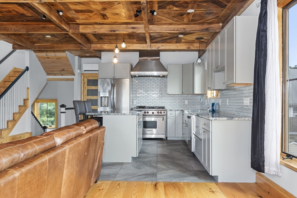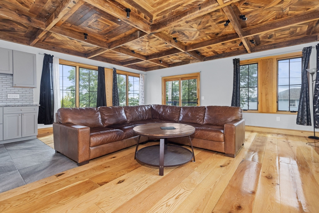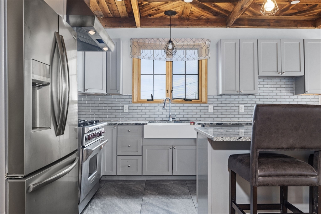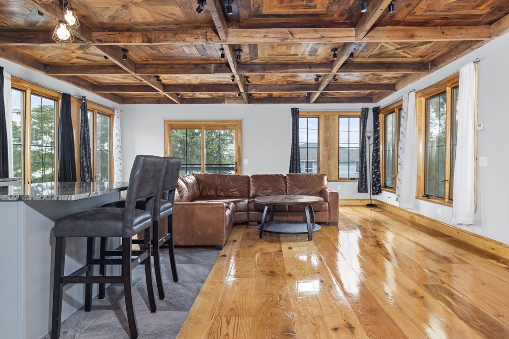 Nestled in a prime location, this newly constructed three-level home boasts two spacious bedrooms and three elegantly designed baths, providing ample living space for comfort and relaxation. Featuring oversized windows that frame breathtaking 180-degree water views, the residence is bathed in natural light, enhancing its open and airy atmosphere. Multiple balconies invite outdoor enjoyment, while the stunning rooftop deck offers unparalleled vistas of Brush neck cove & Greenwich bay. Inside, the wide-plank native oak floors harmoniously complement rustic barnwood ceiling panels, merging modern charm with rustic elegance. The sunlit living room seamlessly connects to a gourmet kitchen, equipped with a Wolf stove, commercial-grade hood, granite island, and a sleek glass tile backsplash. The master bedroom suite features lovely water views and a luxurious full bath with a spacious tiled shower. Additionally, the second bedroom includes its own bath, and convenient washer/dryer facilities