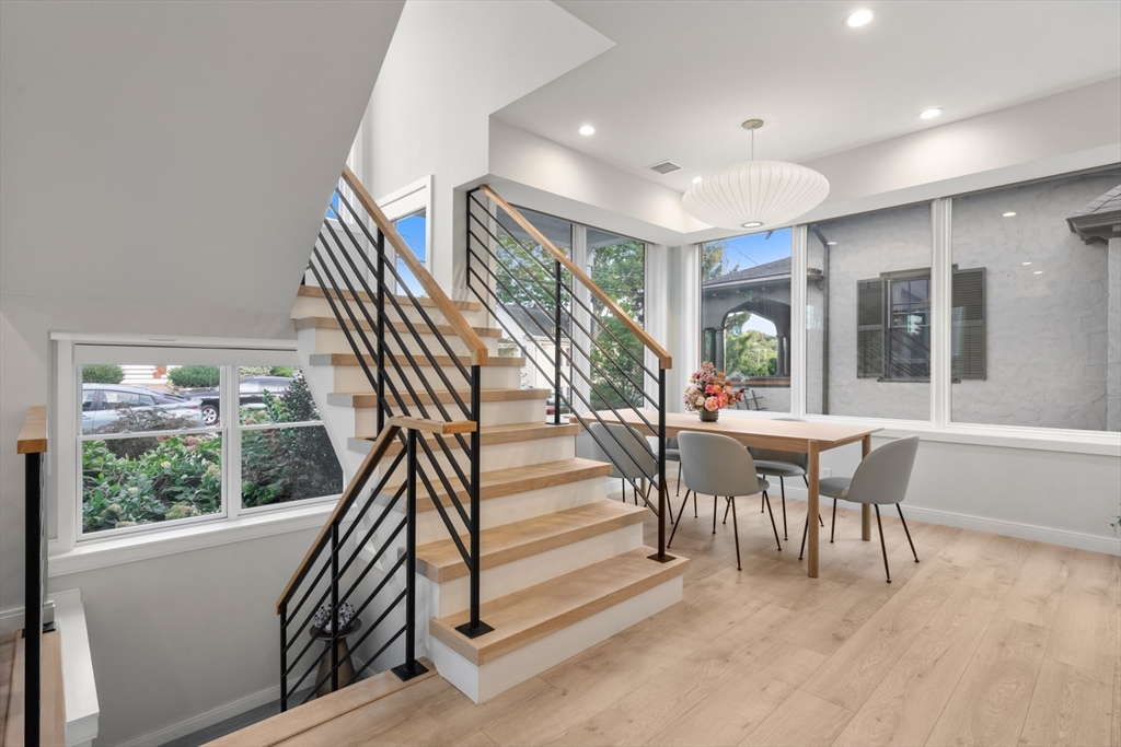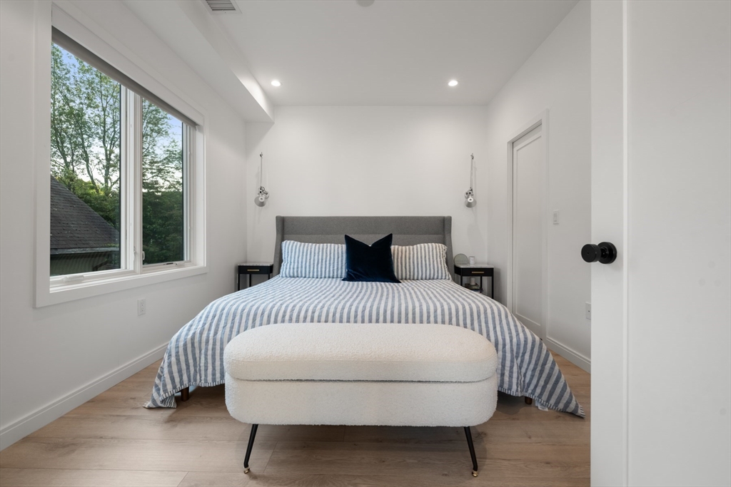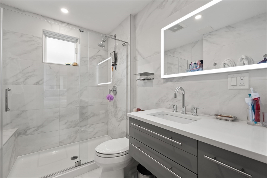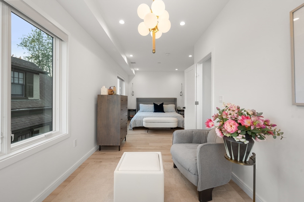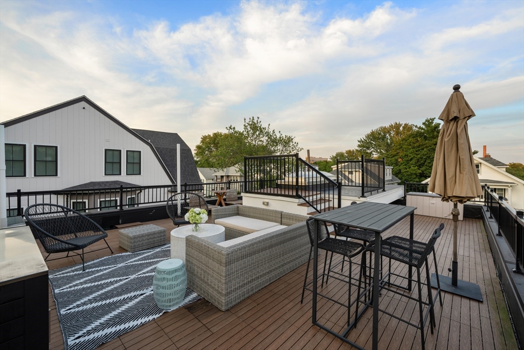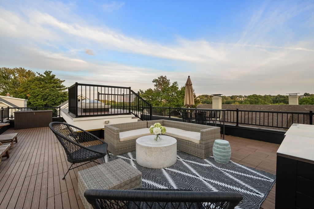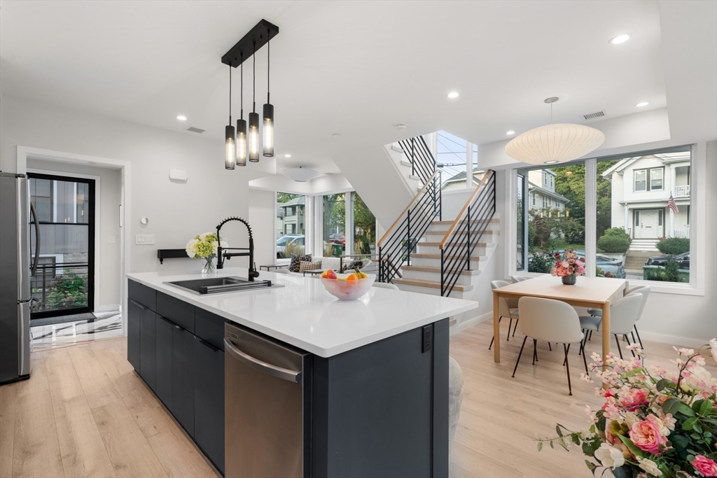 This contemporary East End townhouse checks every box: refined finishes, abundant natural light, private roof deck with Charles River views, parking, and a prime location minutes to Cambridge, Boston, and Arsenal Yards. The main level offers an open layout with a sleek kitchen featuring quartz countertops, custom cabinetry, and stainless steel appliances, flowing to living and dining areas framed by floor-to-ceiling windows with automated Lutron shades. Upstairs are two bedrooms, including a generous primary suite with a redesigned bath and fully customized Elfa walk-in closet. The private roof deck sits just above—ideal for morning coffee or sunset entertaining. The lower level provides flexible space for media, office, fitness, or guests, plus a full bath and laundry. Additional highlights include low-maintenance landscaping with smart irrigation, shared outdoor storage, and excellent access to Charles River trails and commuter routes.