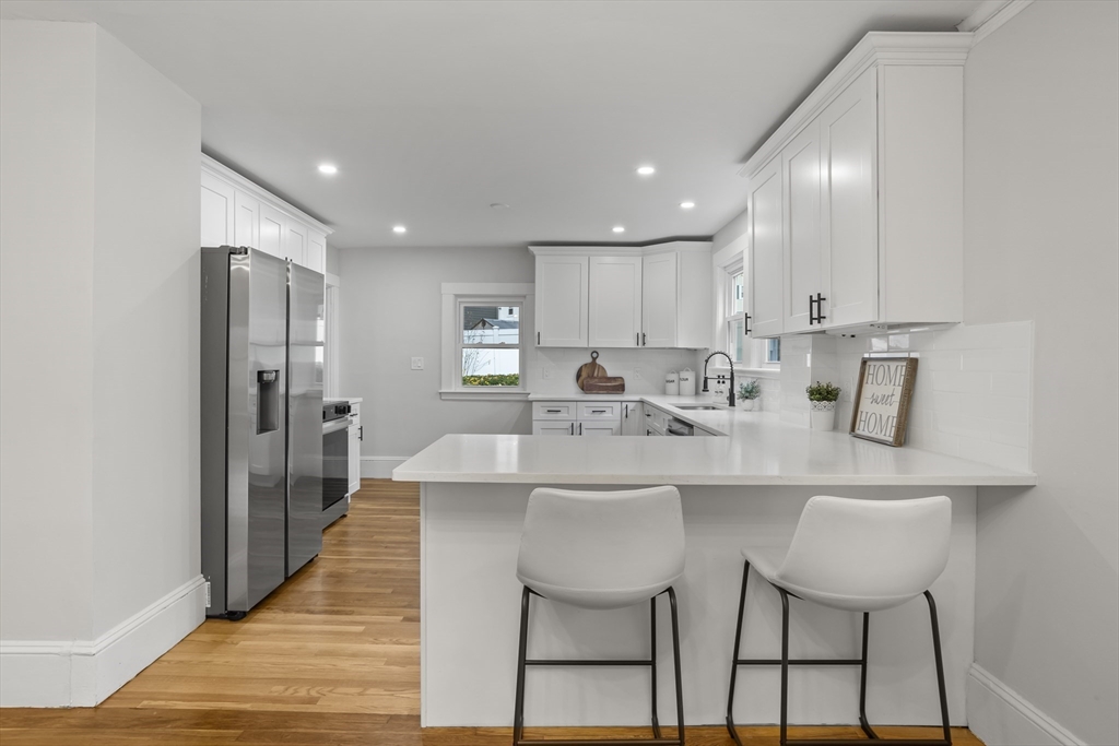 Welcome Home! This stunning, NEWLY RENOVATED first-floor condo delivers MODERN LUXURY in one of Watertown’s most desirable neighborhoods. Sun-filled & move-in ready, features a brand-new open-concept kitchen with sleek QUARTZ countertops & STAINLESS appliances. Freshly painted & newly refinished hardwood floors throughout, the unit offers abundant natural light through NEW WINDOWS & comfort with a NEW high-efficiency HEAT PUMP providing efficient central heating & cooling. Off the large living room, French doors open to a charming study with a cozy fireplace—ideal for a home office or relaxing retreat. Two spacious bedrooms sit just off the spacious dining area. In-unit laundry, ample basement storage, NEW HOT WATER HEATER & covered deck overlooking a partially fenced backyard. Exclusive use garage bay and a dedicated driveway space add extra convenience. Close to Boston, Commuter Rail, Schools, Parks & Shopping/Dining—Nothing left to do but move in and enjoy! OH Sat & Sun 11-1pm.