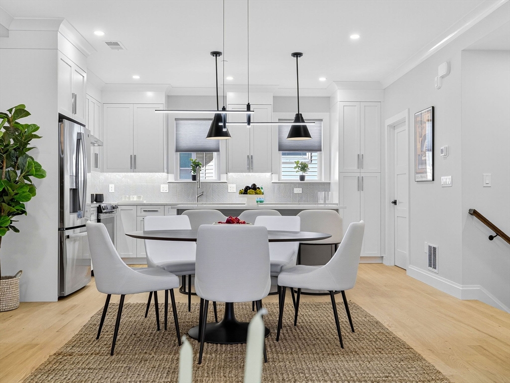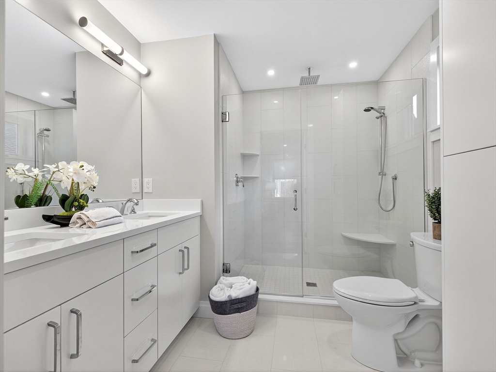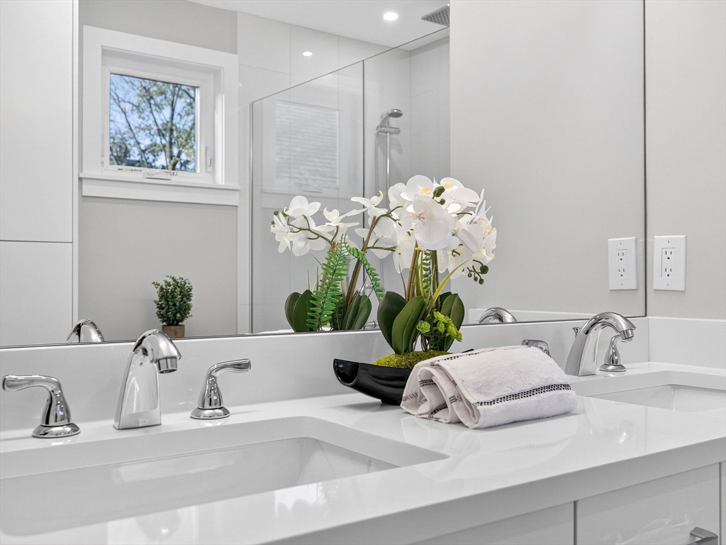 A STEP ABOVE THE REST! THIS EXCEPTIONAL NEW CONSTRUCTION TOWNHOUSE BOAST A HIGH LEVEL OF FINE CARPENTRY & FINISHES. Enjoy modern comforts: a heated 2-car garage w/ an EV Charger, private entrance, high-efficiency heating/AC, fresh air system, monitored sprinklers. The open 1st floor features designer lighting, elegant woodwork, 9’ ceilings, & a gas fireplace w/ a sophisticated hearth—truly "Architectural Digest" ready! The stunning kitchen offers exceptional counter & cabinet space, a quartz island, tasteful white upper/taupe lower cabinets. Complete w/ electric appliances, an externally vented hood, adjacent laundry room w/ Electrolux W&D, & a sophisticated 1st flr powder room. The 2nd flr hosts 3 bedrooms & 2 two luxurious bathrooms. The private primary suite features a double vanity, gorgeous tile, designer lighting, & a custom floor-to-ceiling linen closet. Located in the desirable JP/Rox Stony-Brook neighborhood, minutes to train, SW bike path, cafes & wellness studios.